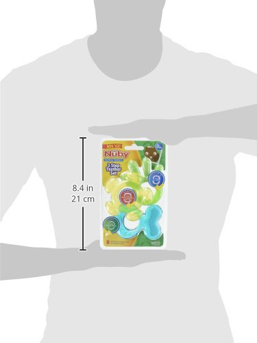 Set includes 3x of Nuby's best-selling teethers made to soothe baby's sore gums. Just a short time in the refrigerator supplies a gentle cooling action that will relieve your little one's discomfort. Colors may vary.