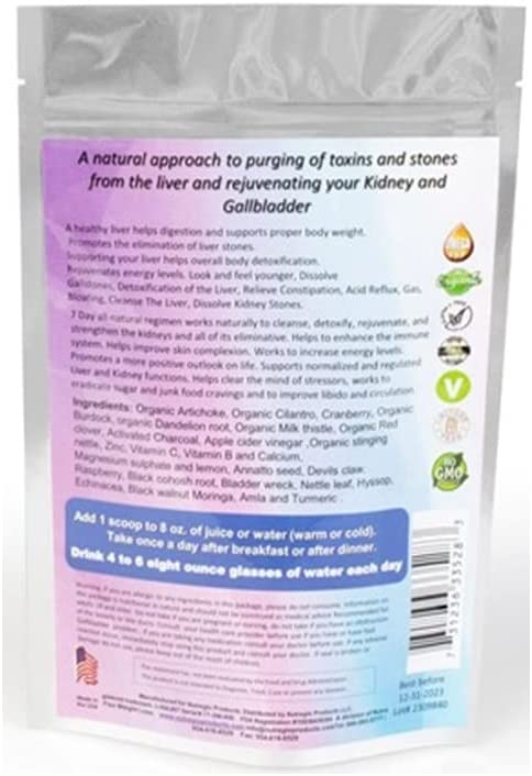 Ingredients: Organic Artichoke, Organic Cilantro, Cranberry, Organic Burdock, organic Dandelion root, Organic Milk thistle, Organic Red clover, Activated Charcoal, Apple cider vinegar ,Organic stinging nettle, Zinc, Vitamin C, Vitamin B and Calcium, Magnesium sulphate and lemon. Add 1 scoop to 8 oz. of juice or water (warm or cold). Take once a day after breakfast or after dinner