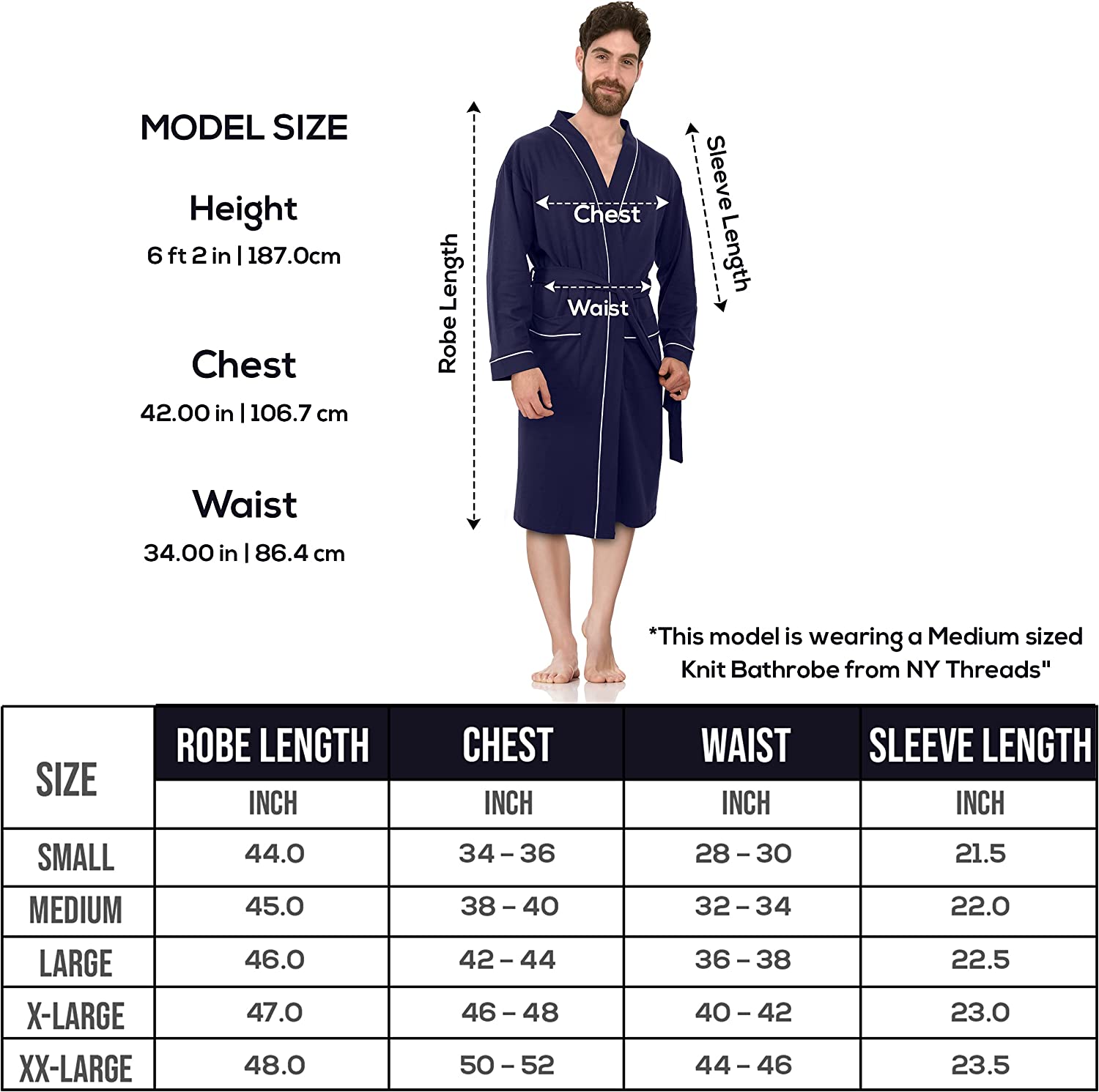 NY Threads Mens Knit Robe Lightweight Summer Cotton Blend Bathrobe