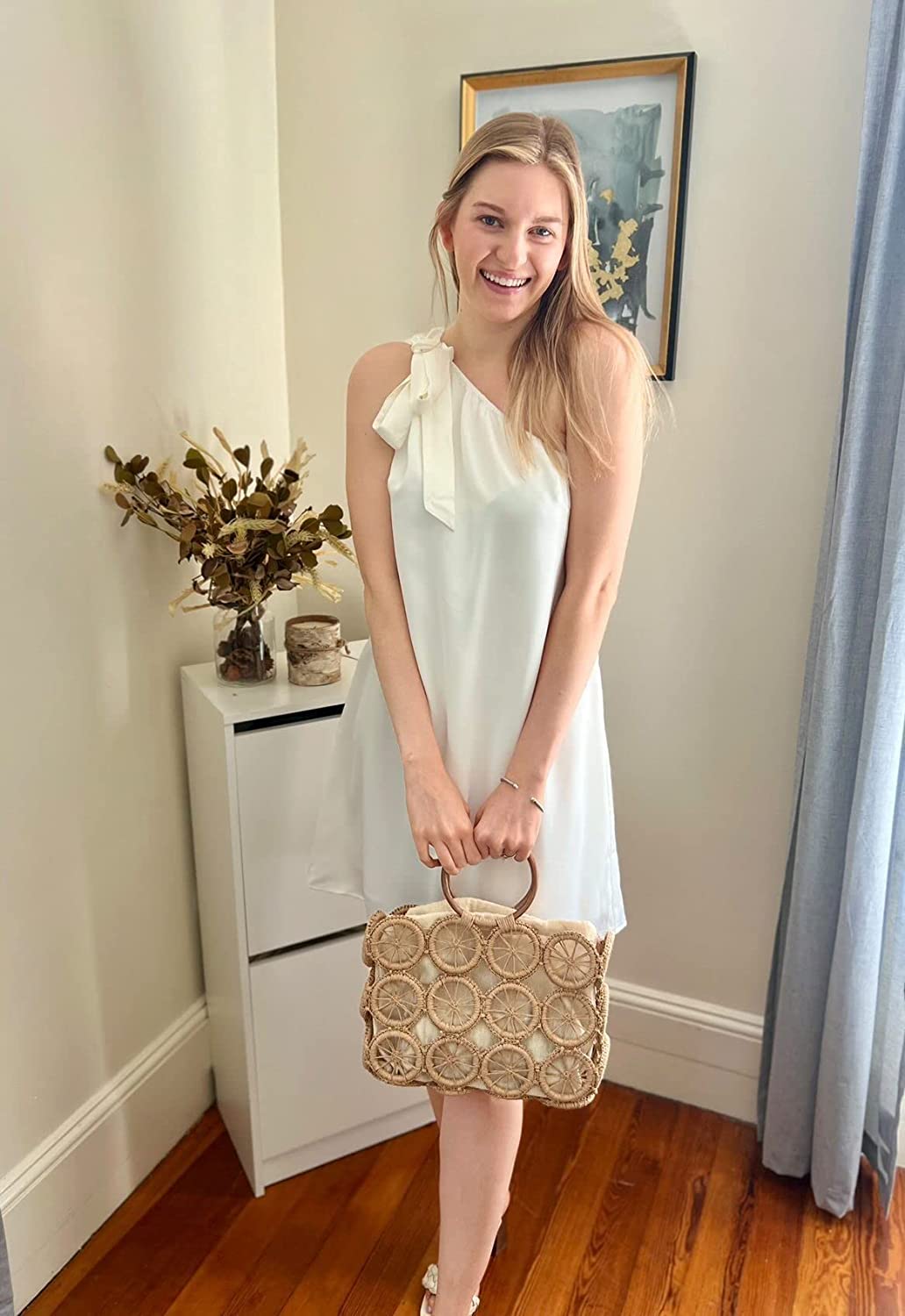 One Shoulder Dresses for Women Sexy Sleeveless Silk Knot Shift Mini Dress Casual Summer Cocktail Party Dress