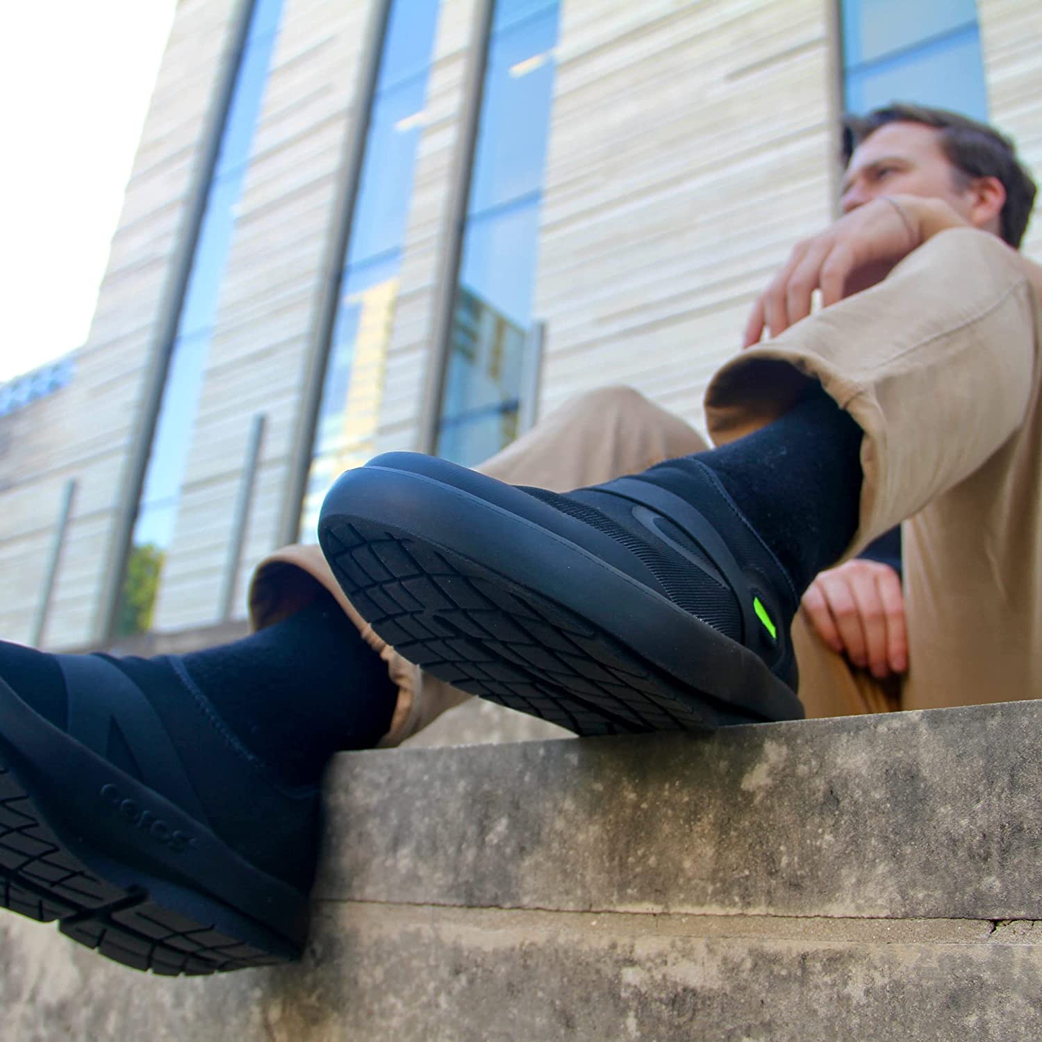 OOFOS OOmg Fibre Low Shoe, Black & Gray - Lightweight Recovery Footwear - Reduces Stress on Feet, Joints & Back - Durable, Breathable Fabric - Machine Washable