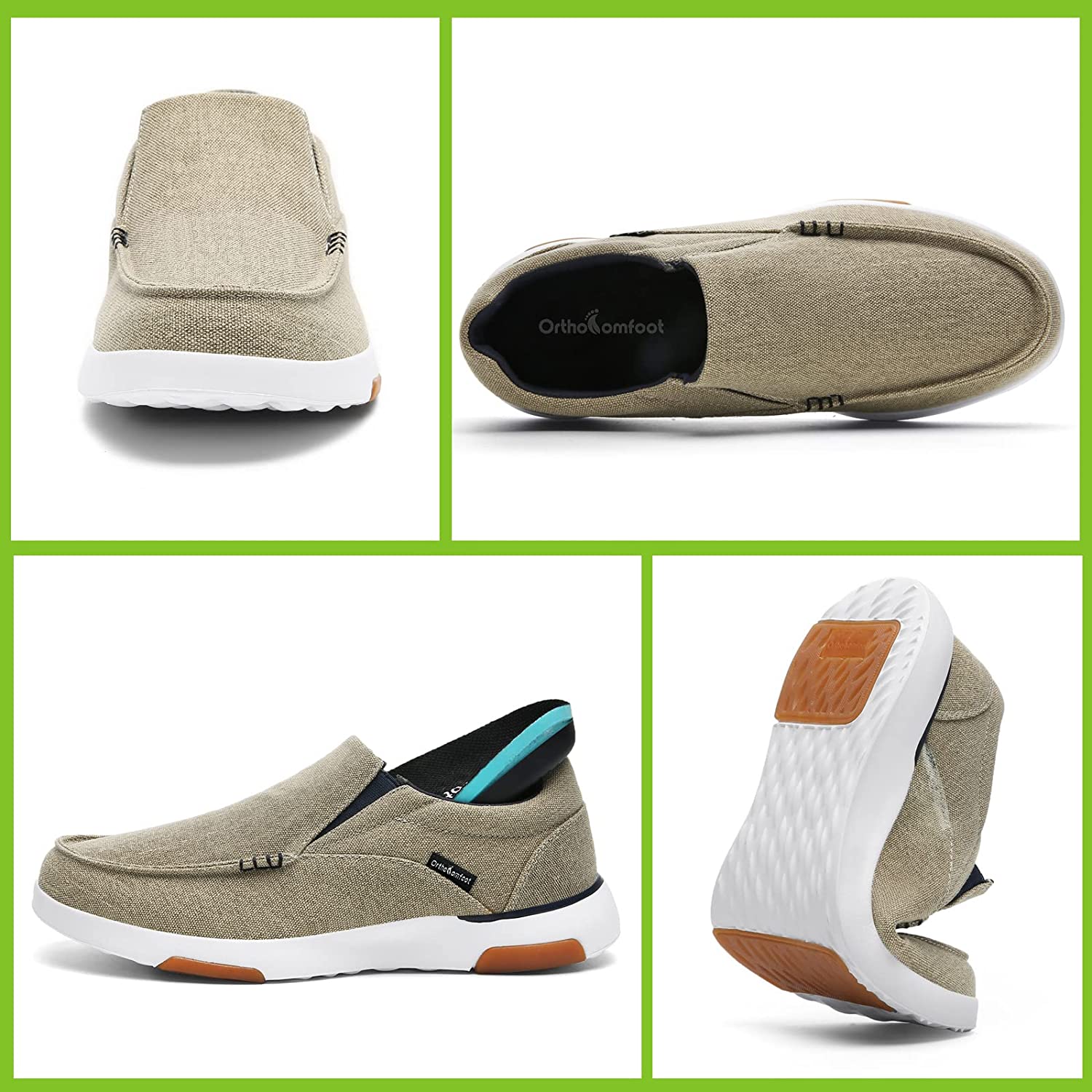 OrthoComfoot Men's Slip On Loafers,Arch Support Boat Shoes for Extra Cushioning and Pain Relief,Canvas Leisure Vintage Flat Walking Shoes
