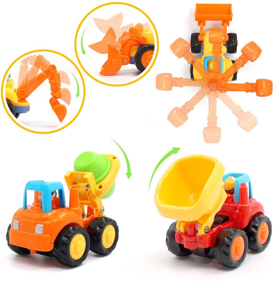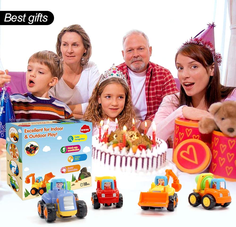 ORWINE Inertia Toy Early Educational Toddler Baby Toy Friction Powered Cars Push and Go Cars Tractor Bulldozer Dumper Cement Mixer Engineering Vehicles Toys for Children Boys Girls Kids Gift 4PCS