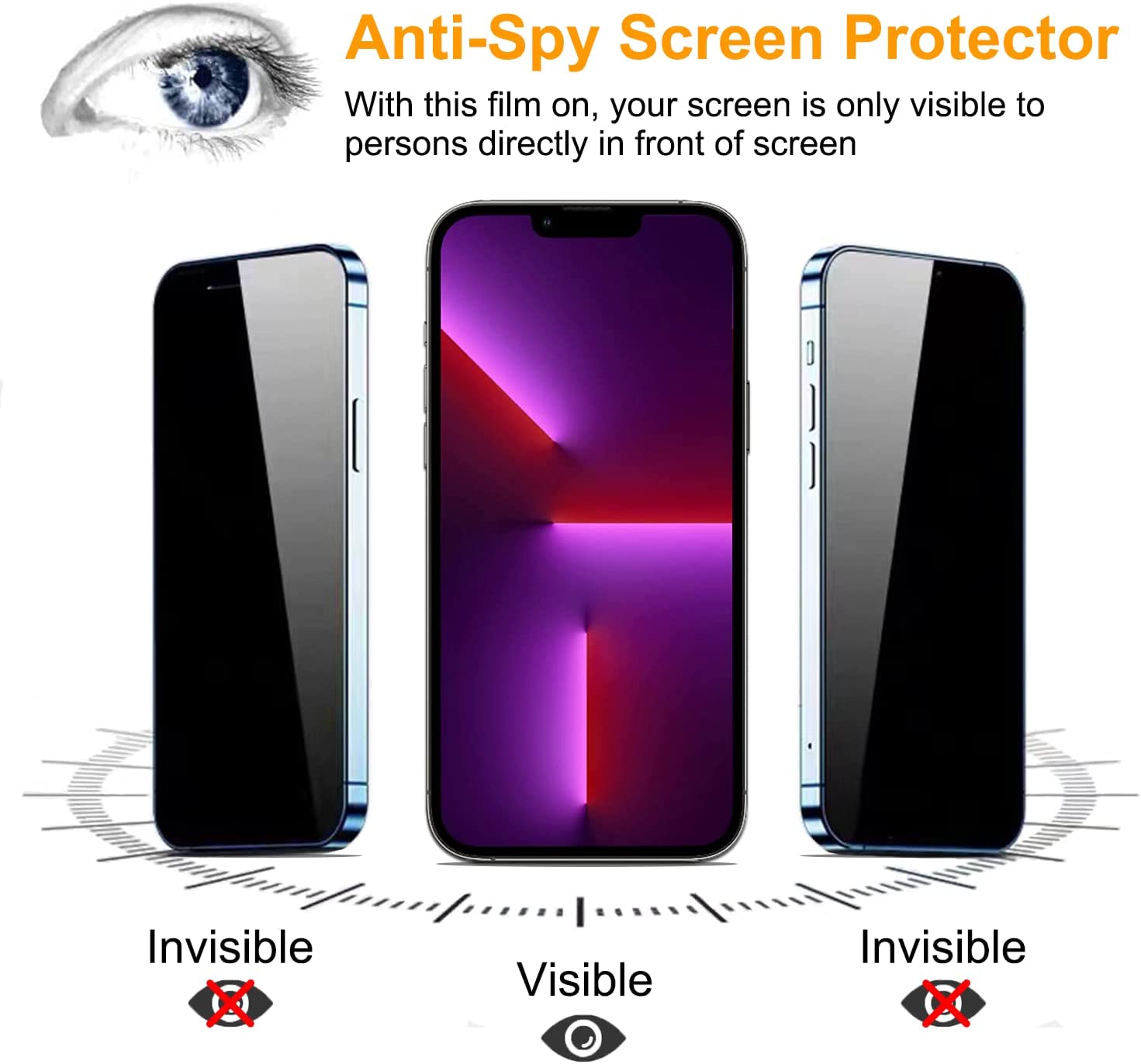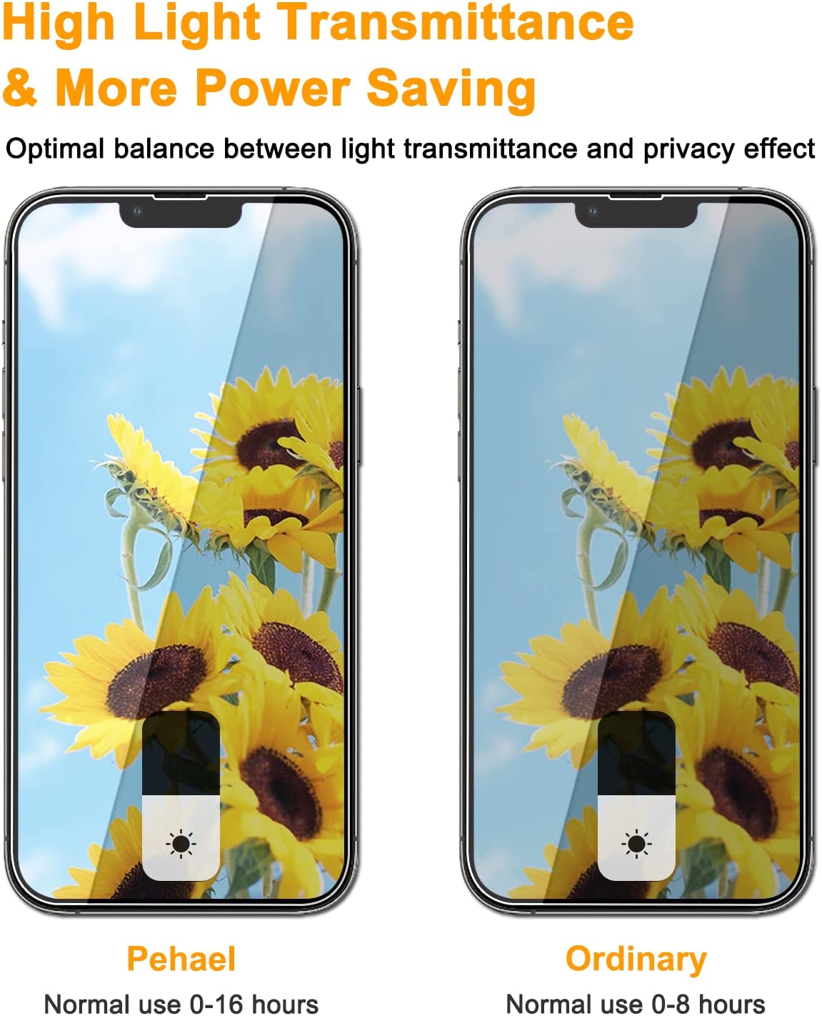 Pehael [2+2 Pack] iPhone 13 Pro Max Privacy Screen Protector with Camera Lens Protector Full Coverage Anti-Spy Tempered Glass Film 9H Hardness Upgrade Edge Protection Easy Installation Bubble Free