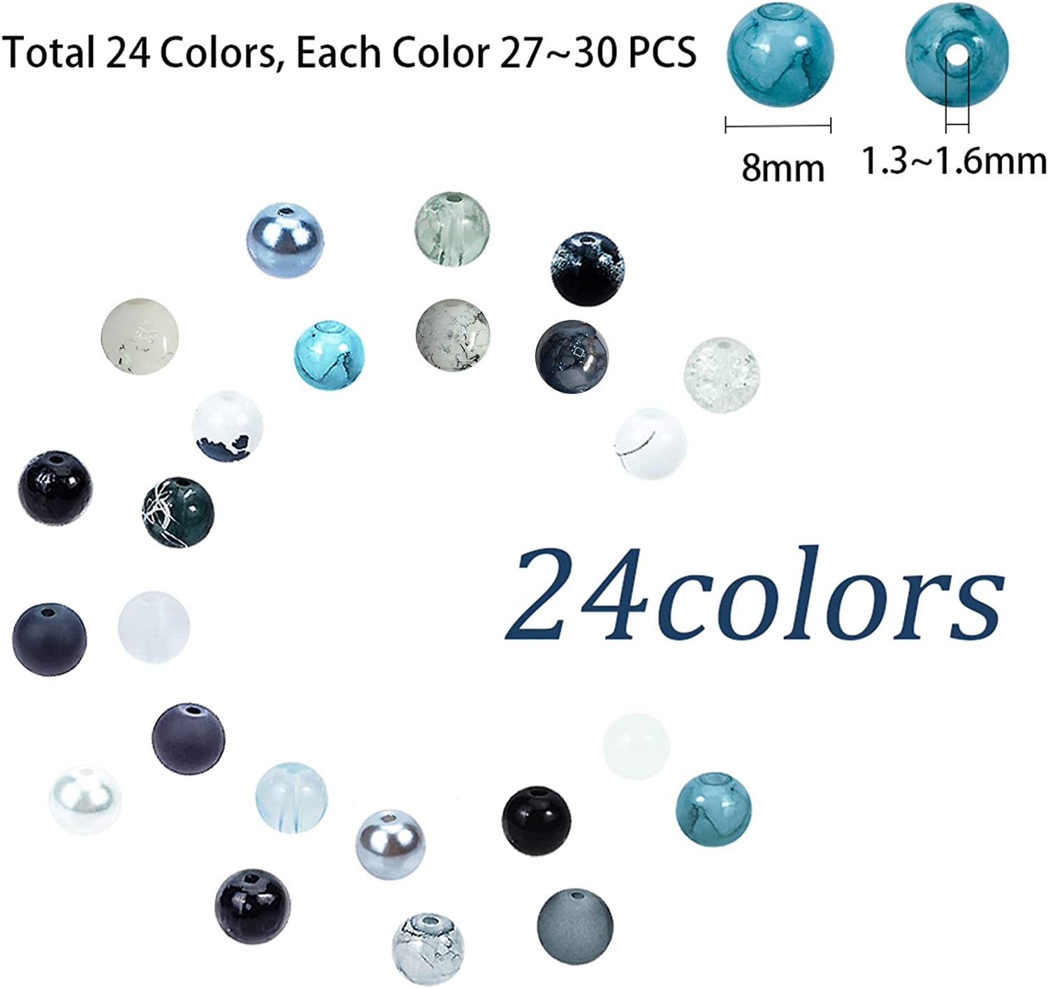 PH PandaHall 24 Color 8mm Round Glass Beads, 720pcs Black White Bracelet Beads Bulk Marble Loose Beads Spacers for Bracelet Earring Necklace Jewelry Making Halloween Eid Mubarak Ramadan Decoration