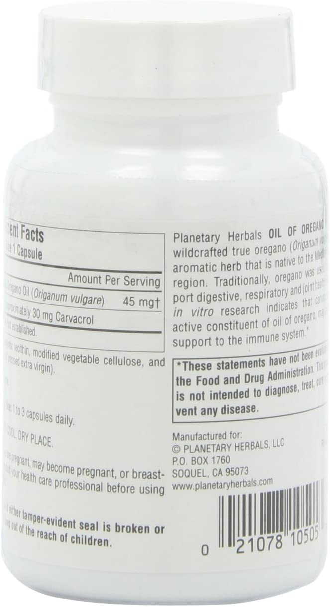 Herbal supplement. Standardized to 70% carvacrol. Planetary Formulas Oil of Oregano is from wild crafted true oregano (Origanum vulgare), an aromatic herb that is native to the Mediterranean region. Traditionally, oregano was used to support digestive, re