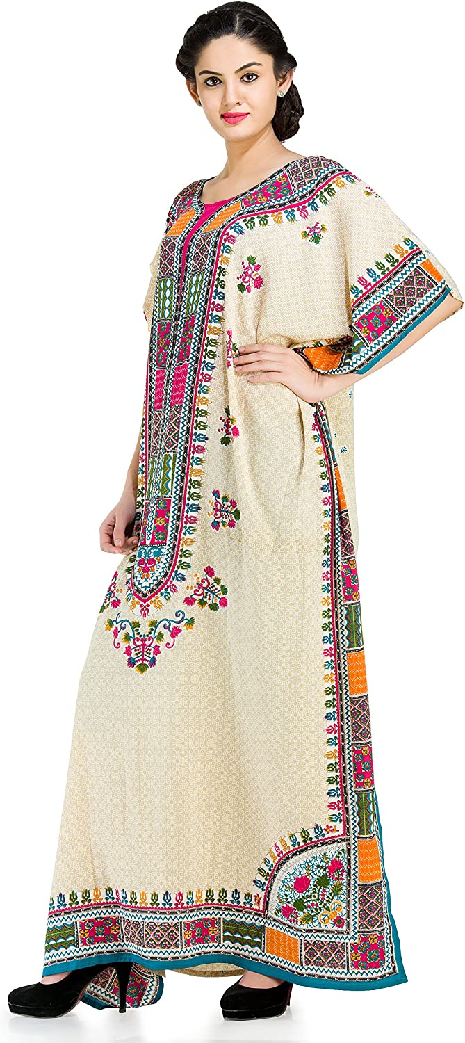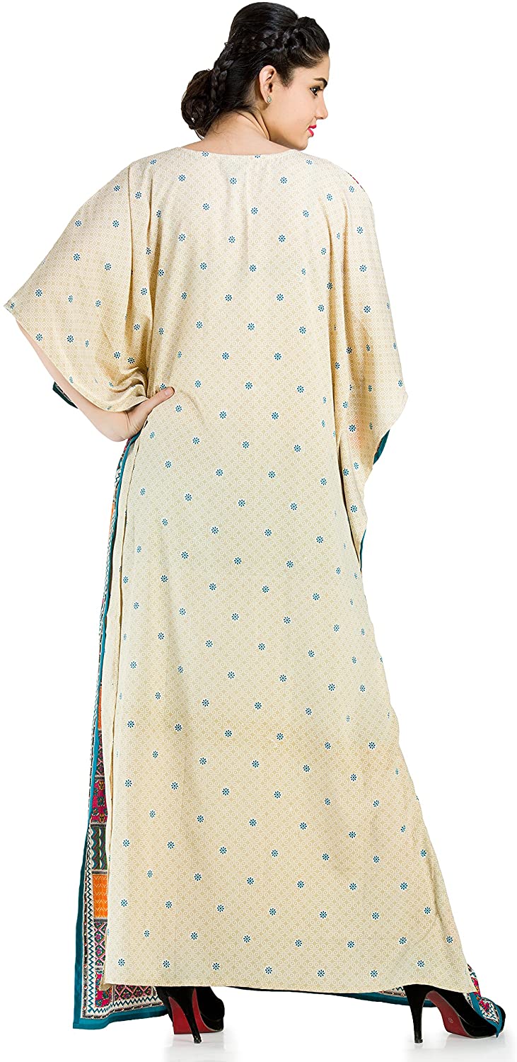 If we want to know the color for calmness,first came in our mind is beige.It's best to wear for any casual as well as any big event. Goood Times Presents a designer long embroidery look printed, plus size comfortable Luxuriously Soft Caftan. You can create multiple looks with this one dress which can be worn day to night and a true wardrobe essential. On the other hand, the print is a mixture of bling and color!!! This print will always stand out and you will be getting the Limelight of the party!!!!