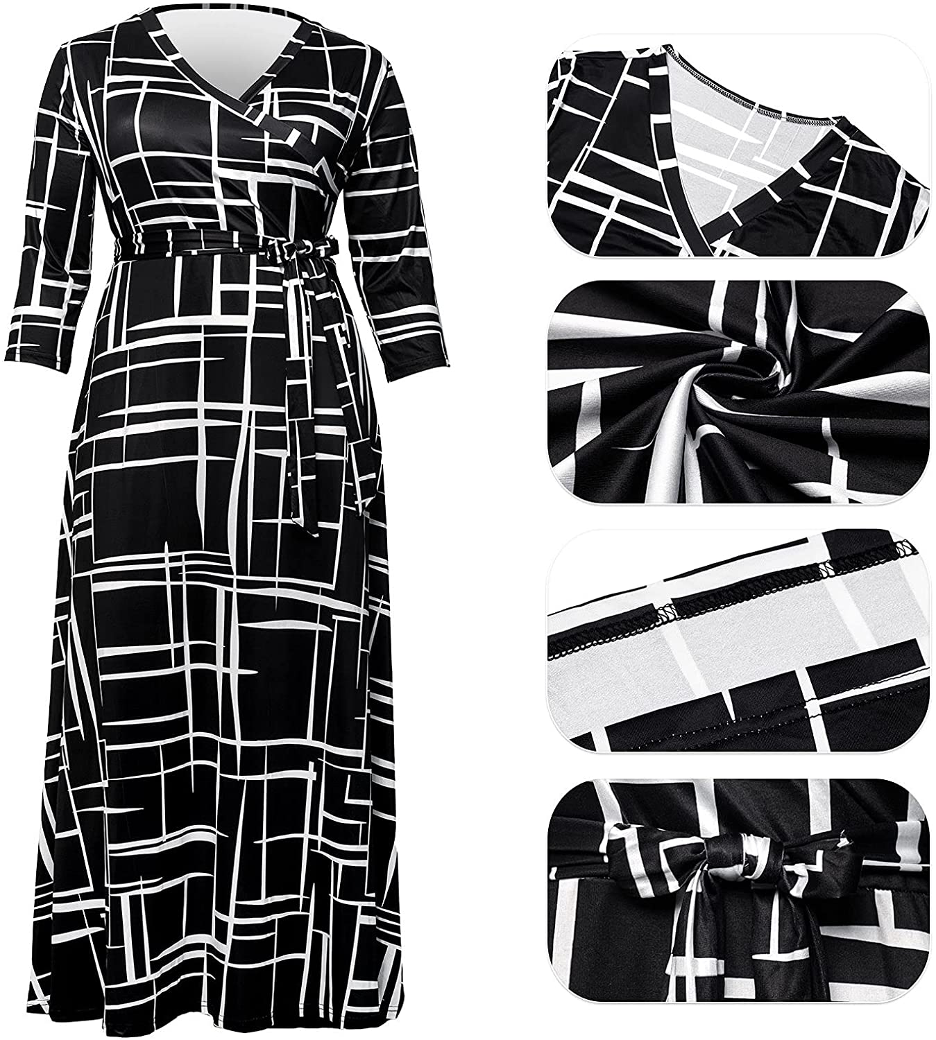 Plus Size Dresses for Women Floral Maxi Dress Flowy 3/4 Sleeve with Belt