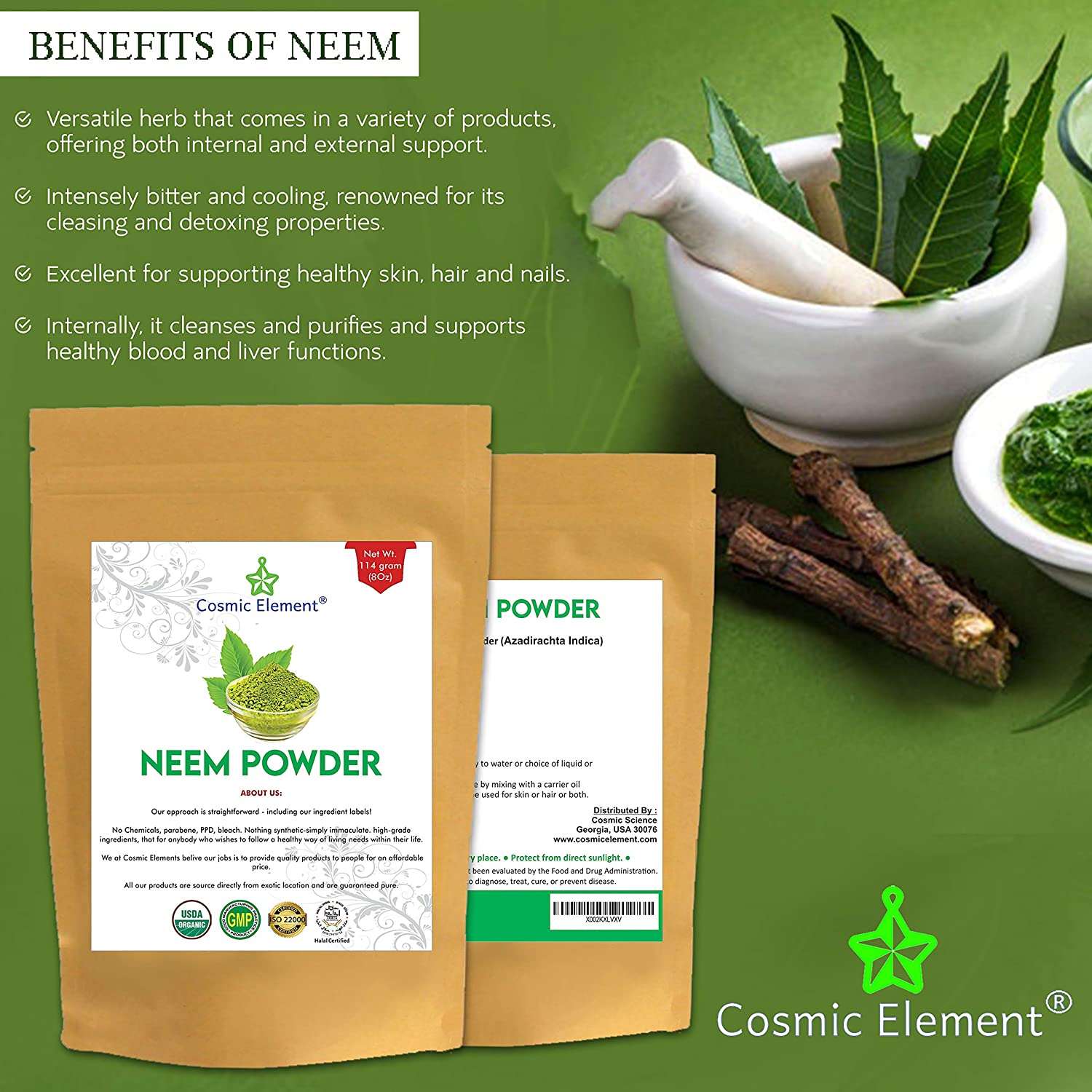 Pure Neem Powder | Pure Wild Crafted Neem Leaf Powder | Very Bitter Neem Supplement for Hair, Skin, Nails and Detox - Azadirachta Indica (4 oz)