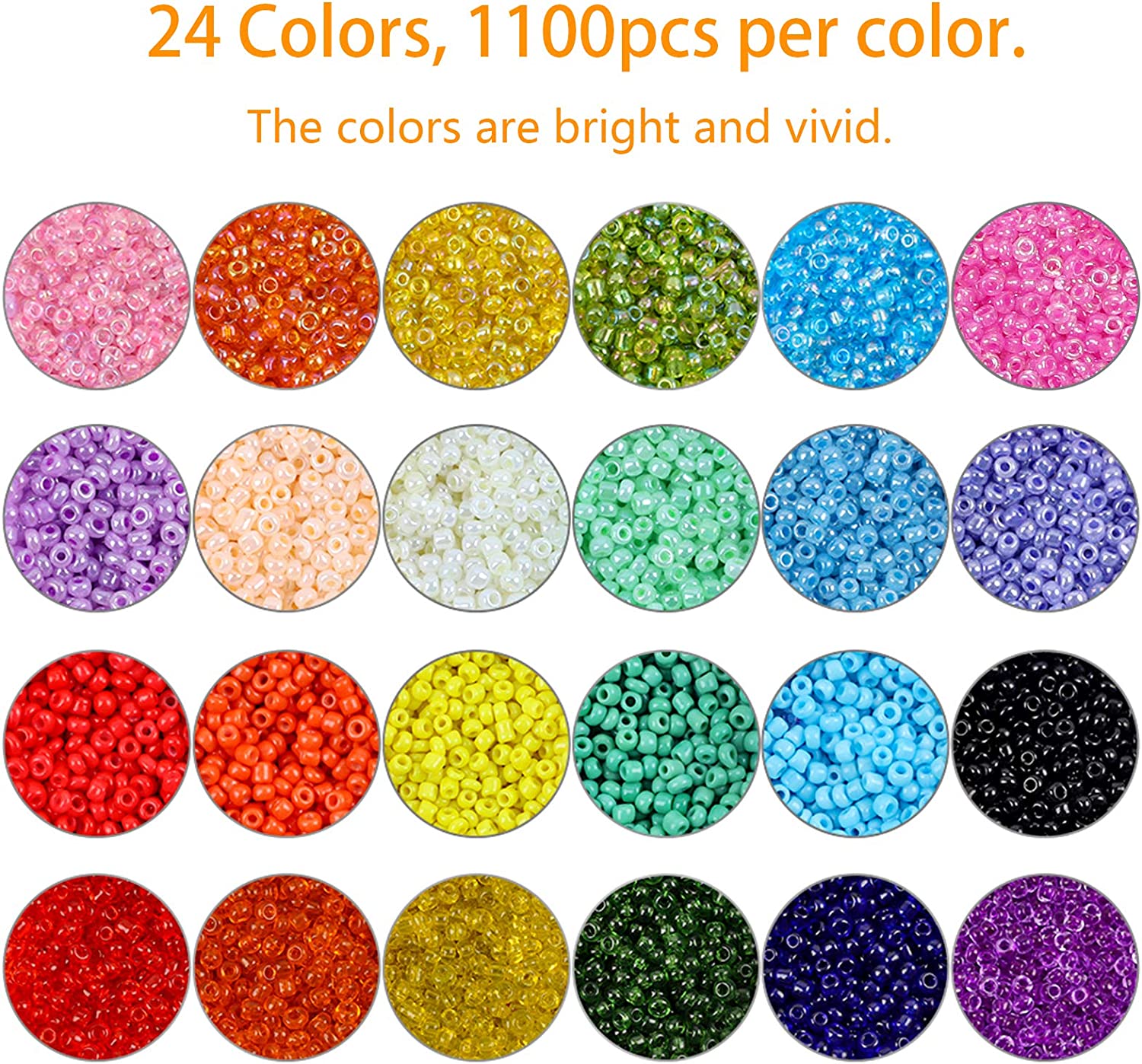 Quefe 26400pcs 2mm Glass Seed Beads 24 Colors Small Beads Kit Bracelet Beads with 24-Grid Plastic Storage Box for Jewelry Making