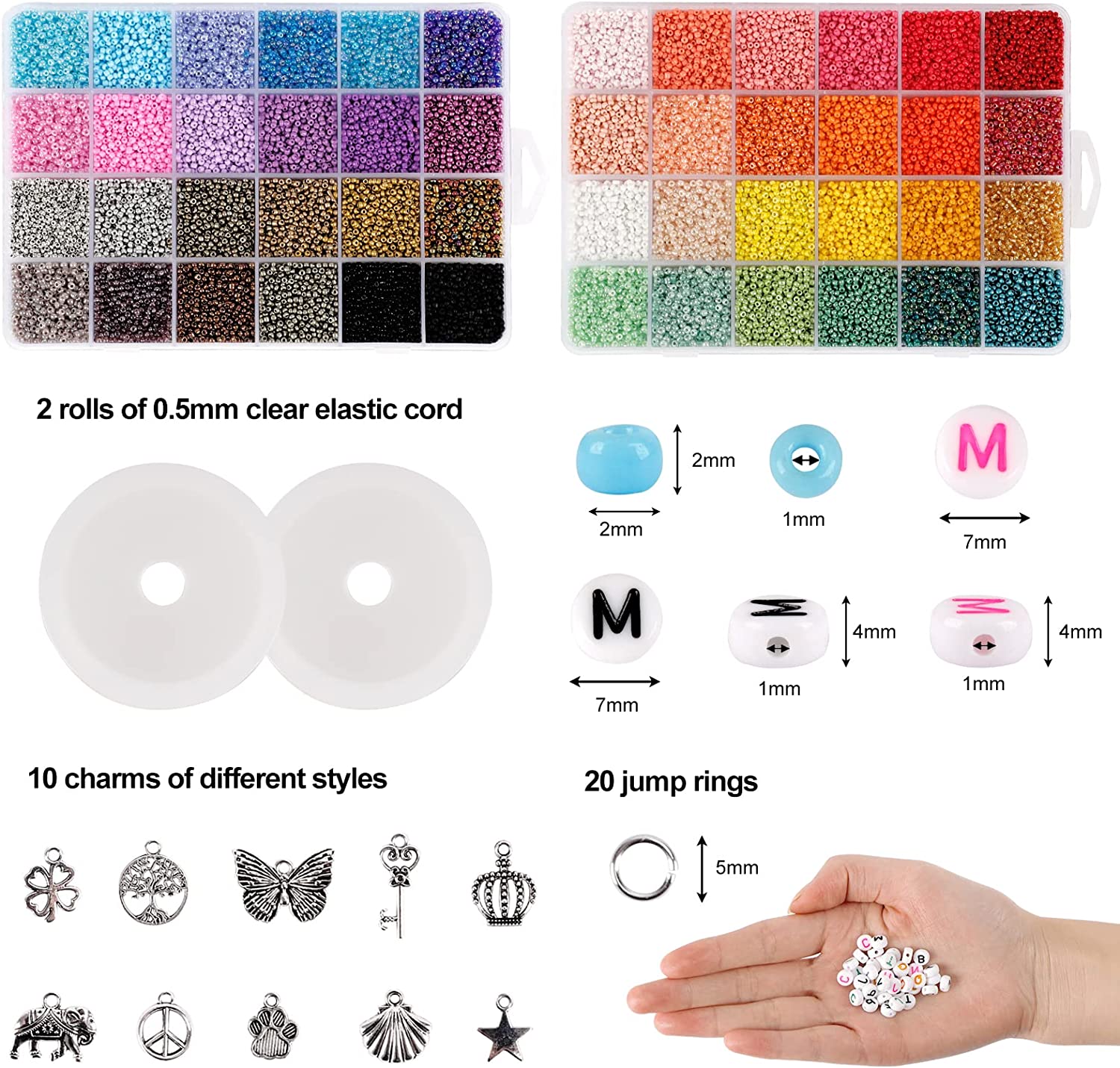 Quefe 36000pcs Glass Seed Beads 2mm Beads 48 Colors 12/0 Small Bracelets Beads and 260 Letter Beads for Jewelry Making Crafts