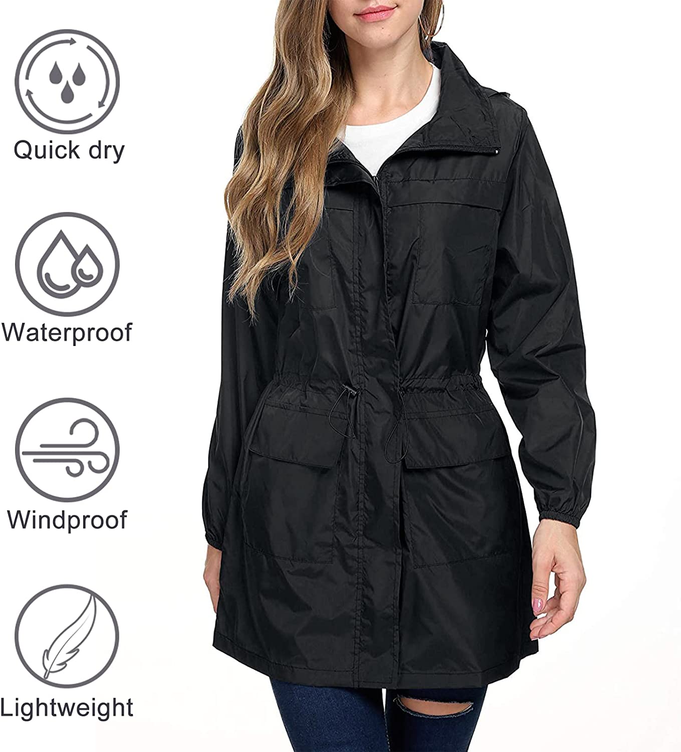 Rain Jackets for Women Waterproof Lightweight Windbreaker Womens Rain Coats with Hood Active Outdoor Packable Raincoat