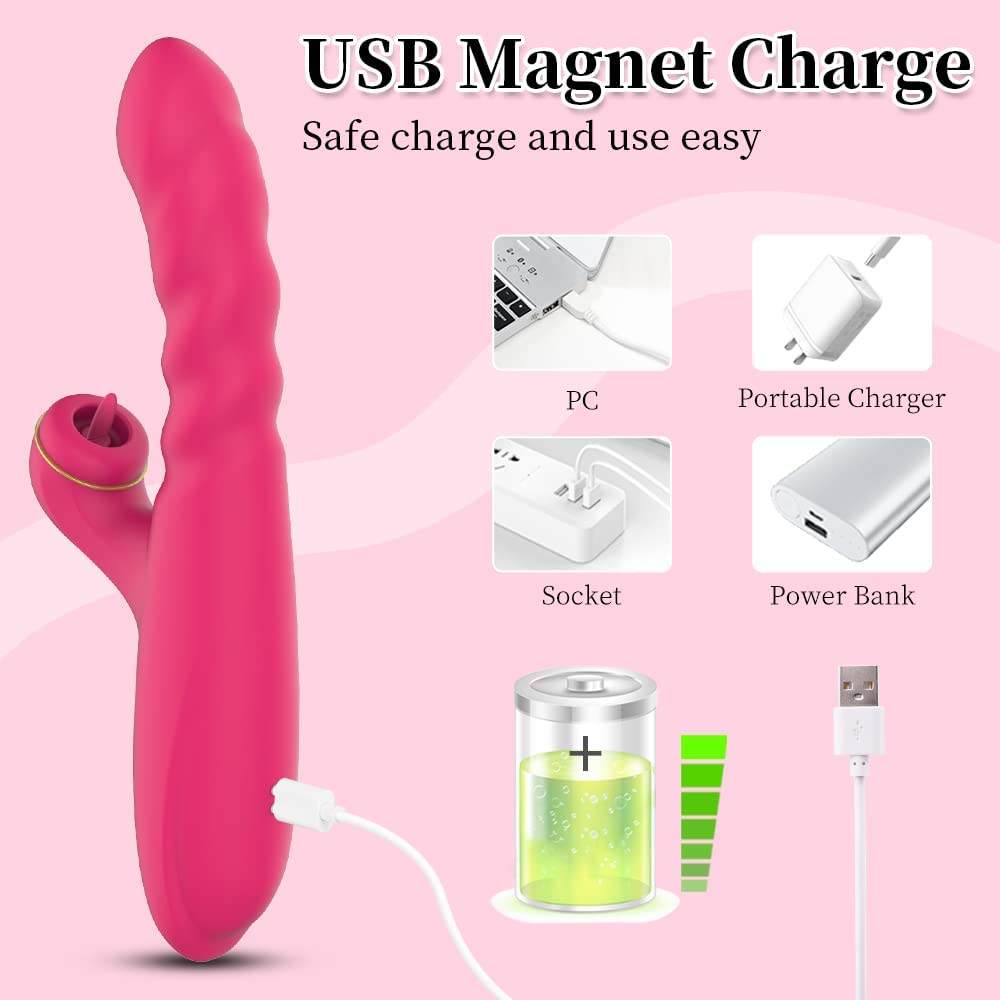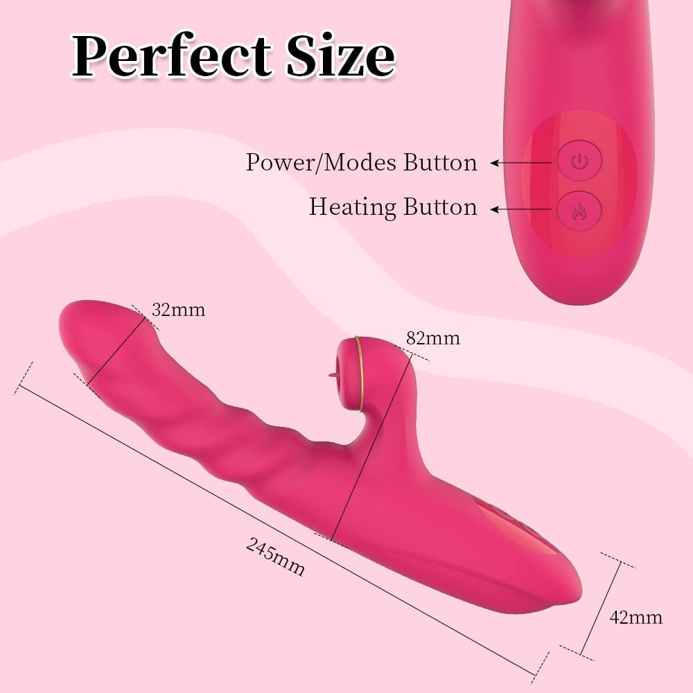 Realistic Dildo, Clitoral Licking G Spot Thrusting Rabbit Vibrator with Heating, Clitoris Nipples Anal Vaginal Rose Stimulator for Quick Orgasm, Adult Waterproof Rechargeable Female Sensory Sex Toys