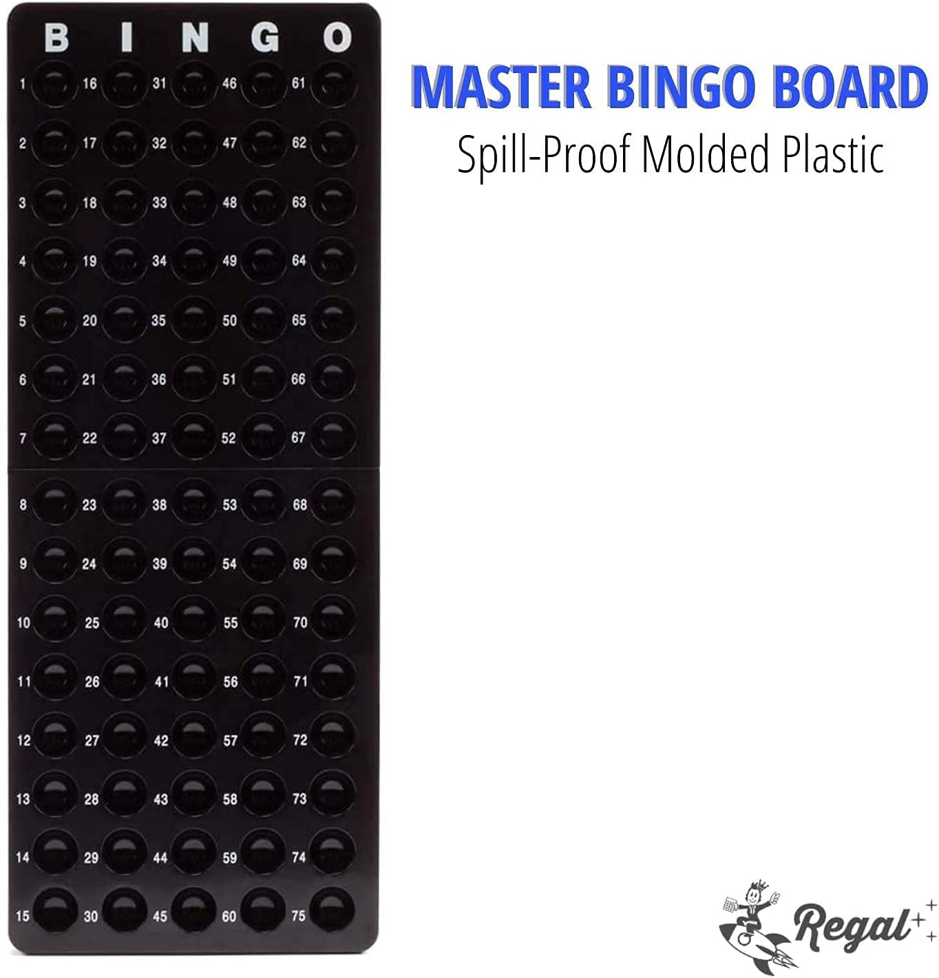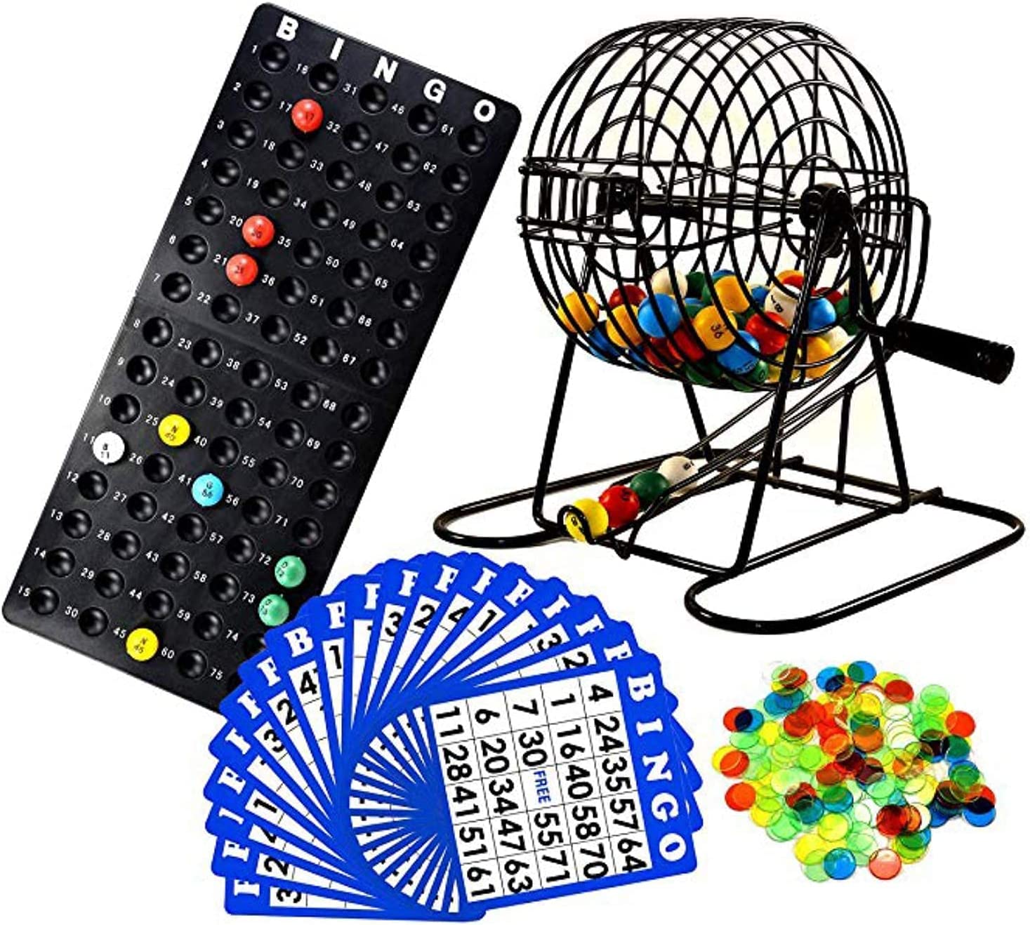 Bingo night just got a lot easier with the Regal Games Deluxe Bingo Game Set! It includes a rotary bingo cage, bingo board, bingo balls, bingo cards, and bingo chips. The sturdy automatic ball selector is made of welded metal wire for extra toughness that is made to last. This bingo cage also features a wide catch to keep the bingo balls on the track and a weighted ball selector to prevent jams. The bingo board is made of spill-proof molded plastic cups and the bingo cards are 5-1/4 inches with large print that make them easy to read for kids and adults. The bingo chips are made from a translucent plastic making it easy to see your marked numbers. Compact and easy to store, the Deluxe Bingo Game Set is the perfect addition to your game night collection. It provides hours of fun for family and friends during any party or gathering. For decades, Regal Games has been bringing family fun entertainment to a new generation of toy and game lovers. The Founder of Regal Games, Erich Spitzner, forever changed the face of Bingo with his invention of the window-style shutter bingo cards. From that original invention on, our products are designed for ease-of-use and provide great value for families to bring miles of smiles and hours of fun.