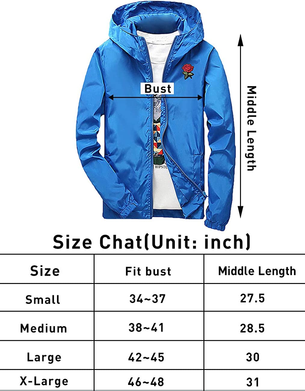 Rexcyril Men's Rose Floral Windbreaker Hooded Jacket Lightweight Casual Full Zip Flower Coat