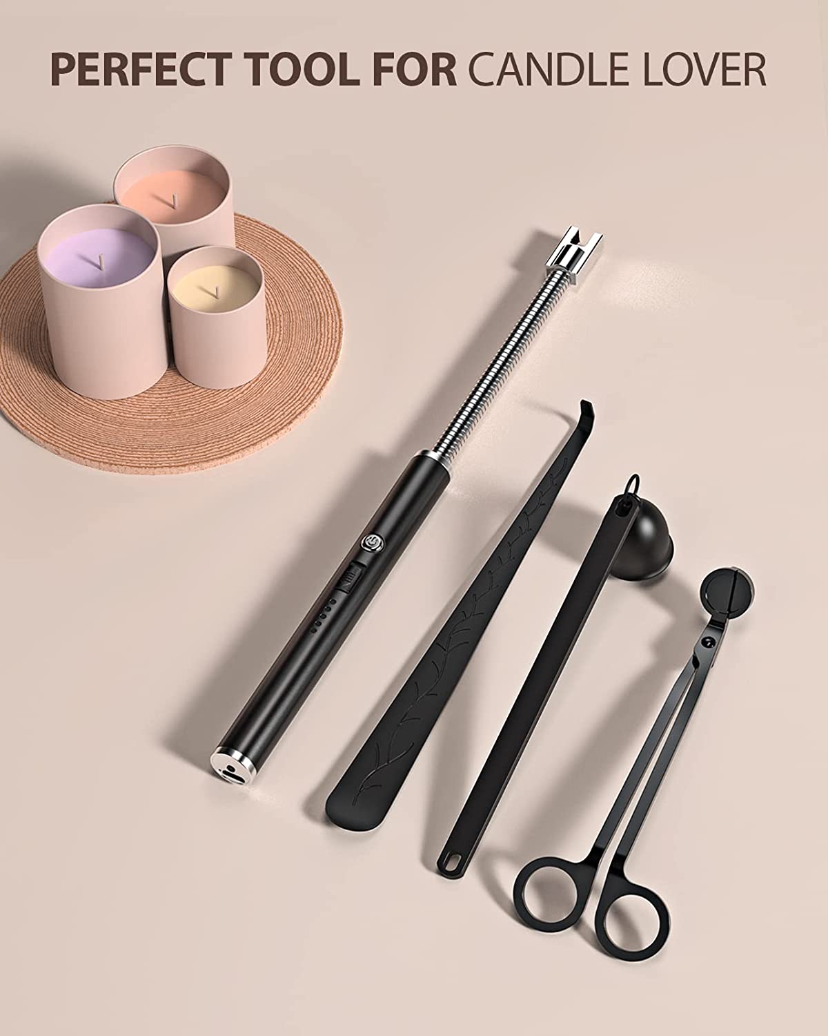RONXS Lighter Electric Lighter, Light Your Large Candle with A Simple Press of Button, No Butane Fuel Safety Rechargeable Candle Lighters Matches(Black)