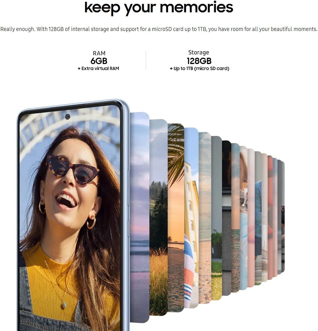 LONG-LASTING BATTERY: Your busy life deserves a battery built for busy; Whether you’re taking a video call on your commute, catching up on your favorite show or with friends and family, your long-lasting, super fast charging battery has your back. POWERFUL PERFORMANCE: The very best of Galaxy A Series gives you awesomely smooth streaming of your favorite content with the most powerful performance in its series and awesomely fast speeds to download shows and movies — all at the speed of 5G. EXPANDABLE STORAGE: Galaxy A53 5G gives you the A Series’ biggest built-in storage and lets you enjoy more memories and entertainment; With an additional 1TB of expandable storage with a microSD card, you can hold on to every smile and relive every epic vacay. INTELLIGENT CAMERA: Capturing content is as easy as pose, shoot and share with A53 5G’s intelligent camera; Single Take lets you capture video, pictures and more with just one tap, while image stabilization technology makes sure every clip is crystal clear. INFINITE DISPLAY: Whether you’re streaming short videos or kicking back to complete a whole series, the Galaxy A53 5G Super AMOLED display is built to keep you entertained, with incredible color clarity that translates into awesome resolution. MODERN DESIGN: Life happens, but Galaxy A53 5G*** provides a premium slim design that is built to last through those unpredictable moments; The body was engineered to endure, so you can worry less around water and dust. PRIVACY & SECURITY: Protect your data with multilayered Knox Security; Also, with Private Share, you can set time limits and expiration dates on all shared files, revoke access at any time and ensure the intended recipient is the only one who can open your files — and that they cannot send or screenshot your stuff.