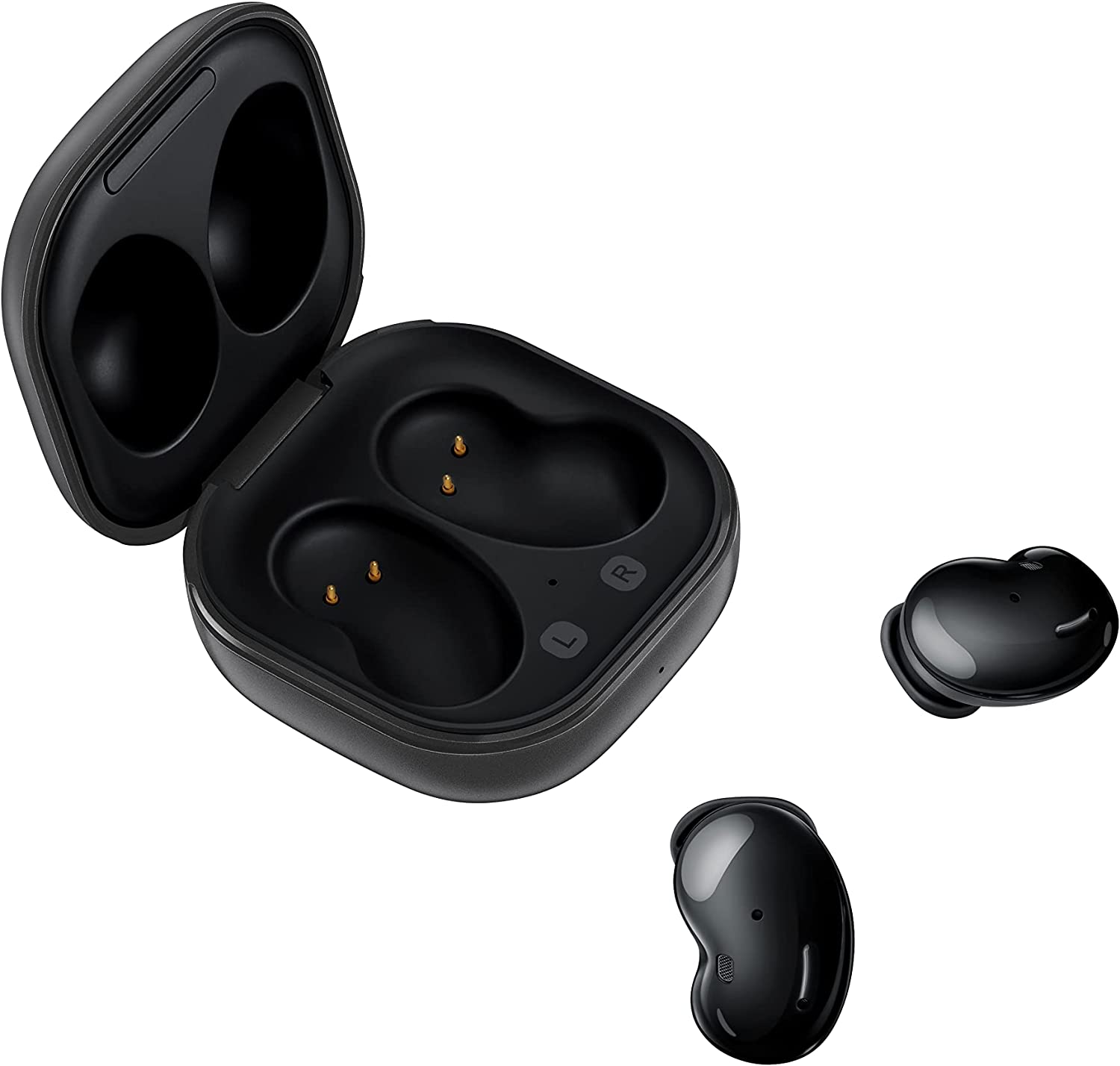 Upgrade your sound and style with the Samsung Galaxy Buds Live. Designed with the larger Galaxy Buds speaker, improved bass and an open fit, playlists sound more like live music than ever before. When you need to block out background noise for a phone call or important tasks, initiate Active Noise Cancellation with a touch. Buds Live is easy on the eyes, light on the ears, and have a long-lasting battery life. Features including Active Noise Canceling are enabled through a Bluetooth connection or the Galaxy Wearable app on Android, available through Google Play Store, and the Galaxy Buds app on iOS devices, available through the App Store. Actual battery life may vary and depend on usage conditions such as function settings, playback file type, and Bluetooth signal strength.