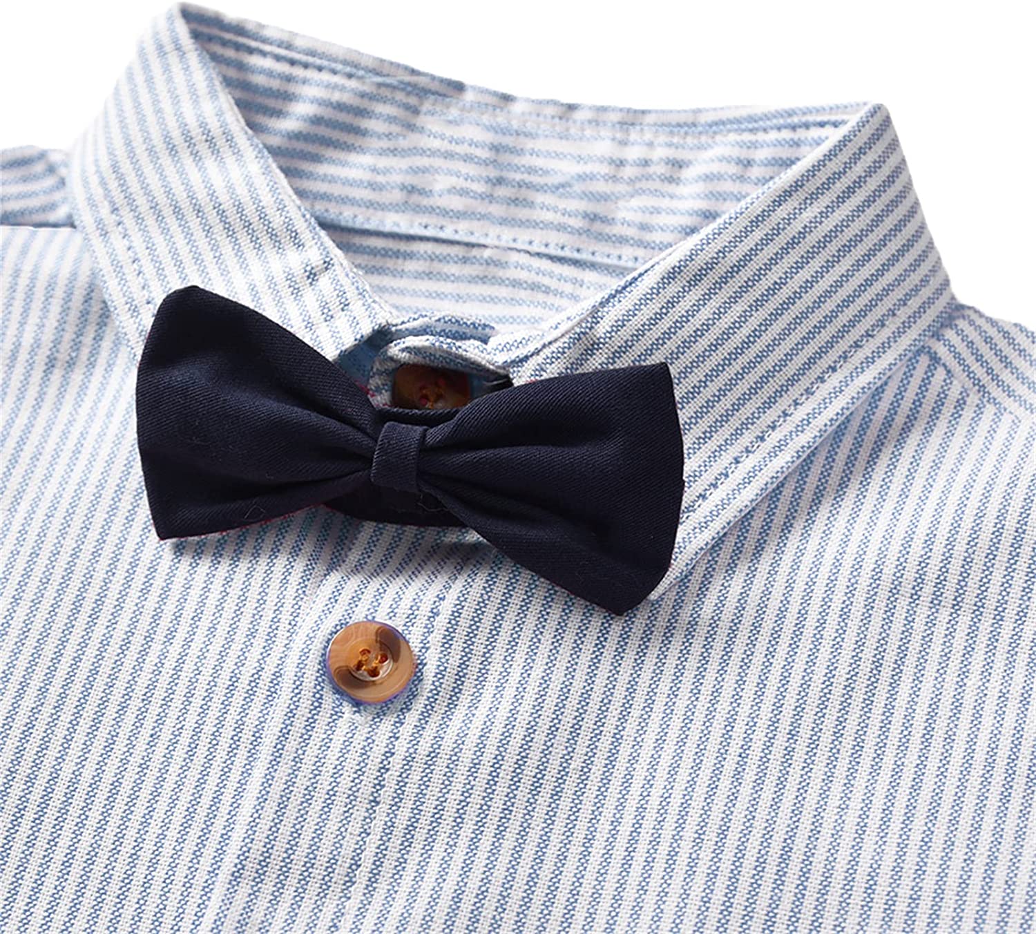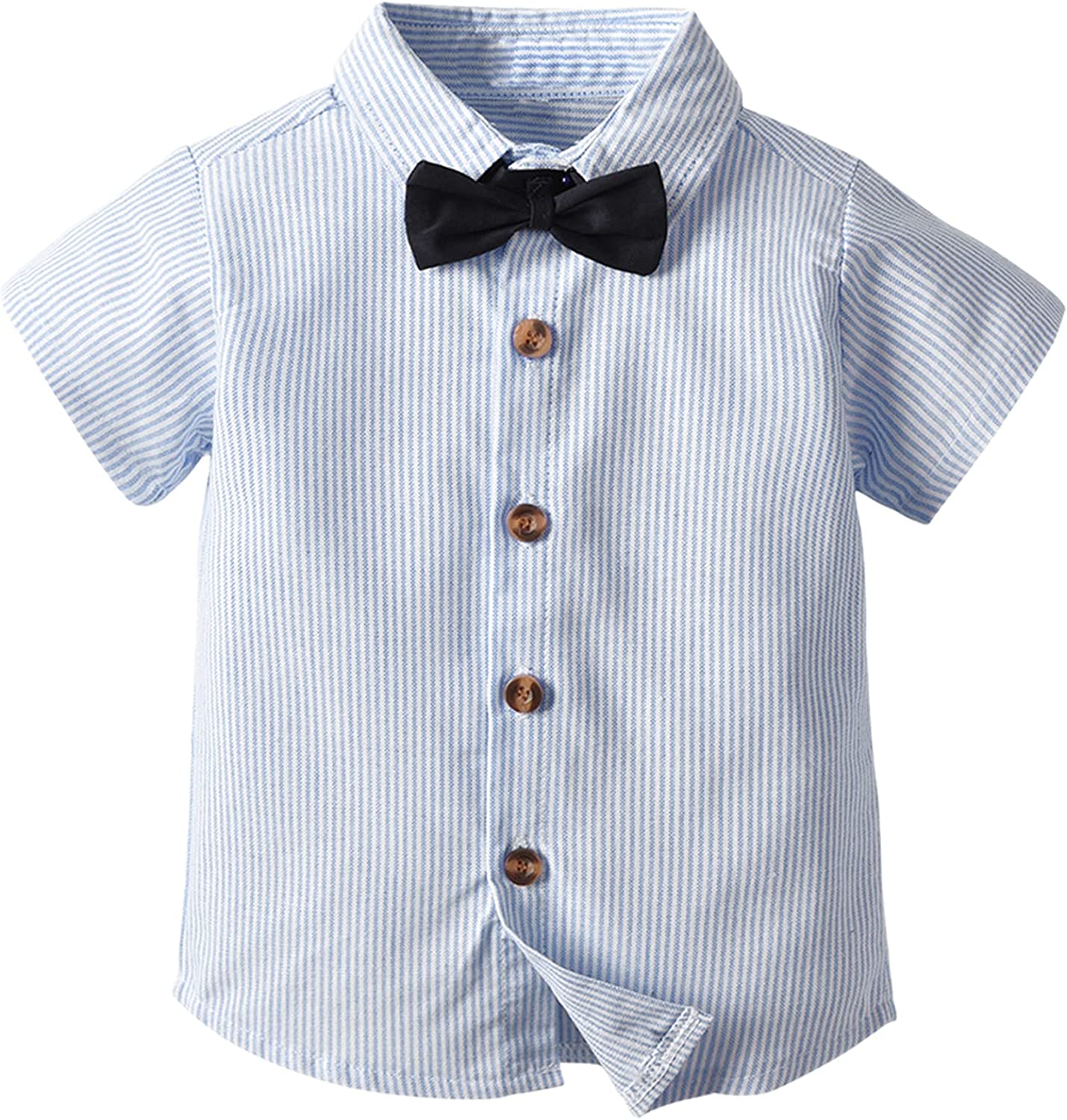 SANGTREE Baby Boys Gentleman Suit Clothes, Dress Shirt with Bowtie + Suspender Shorts