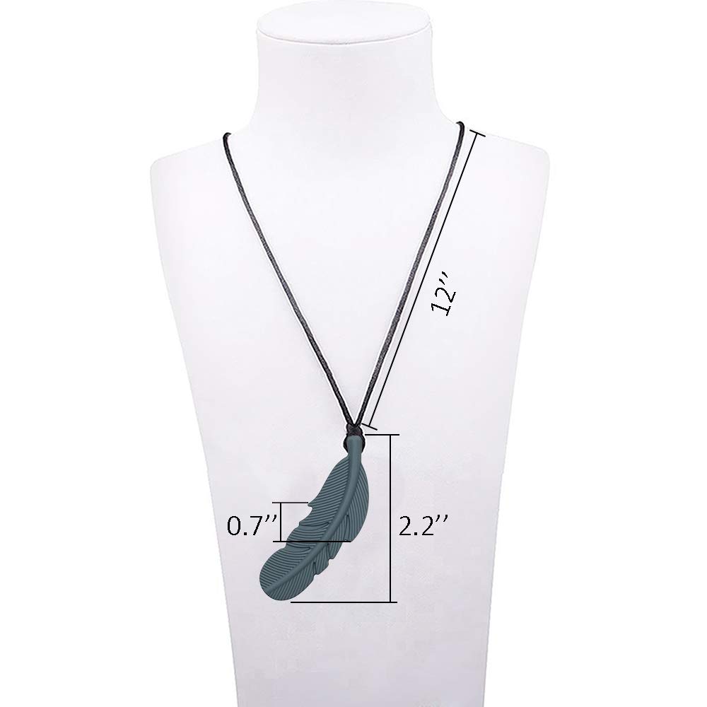 Sensory Chew Necklace for Kids, Boys and Girls, 4 Pack Silicone Feather Chewy Necklaces for Autism, ADHD, Chewing, Biting, Oral Motor Chewable Pendant for Mild Chewers