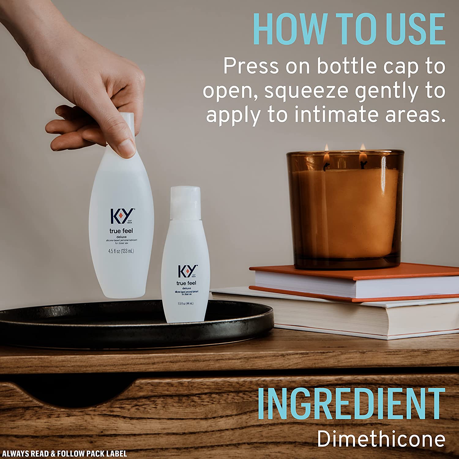 K-Y True Feel Premium Silicone Lube is a long lasting personal lubricant that helps you feel close and natural to your partner. From K-Y, the #1 Doctor Recommended Brand. Do not use if quality seal on the opening of the tube is broken or missing.