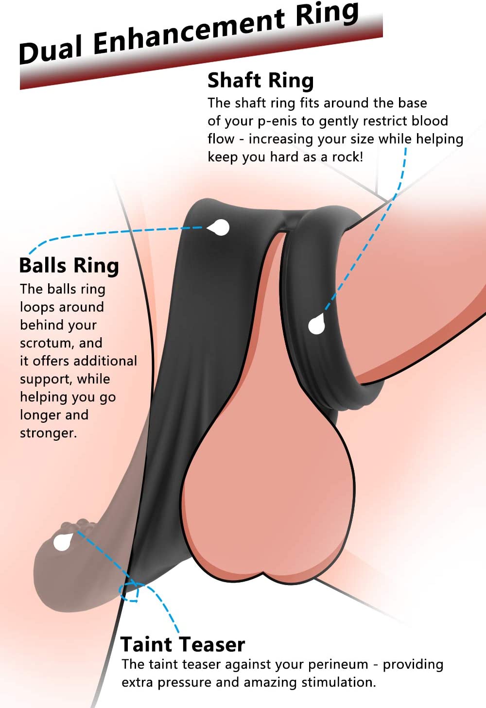 Silicone Dual Penis Ring with Taint Teaser, Premium Stretchy Cock Ring Longer Harder Stronger Erection Enhancing Sex Toys for Male and Couples Play (Taint)