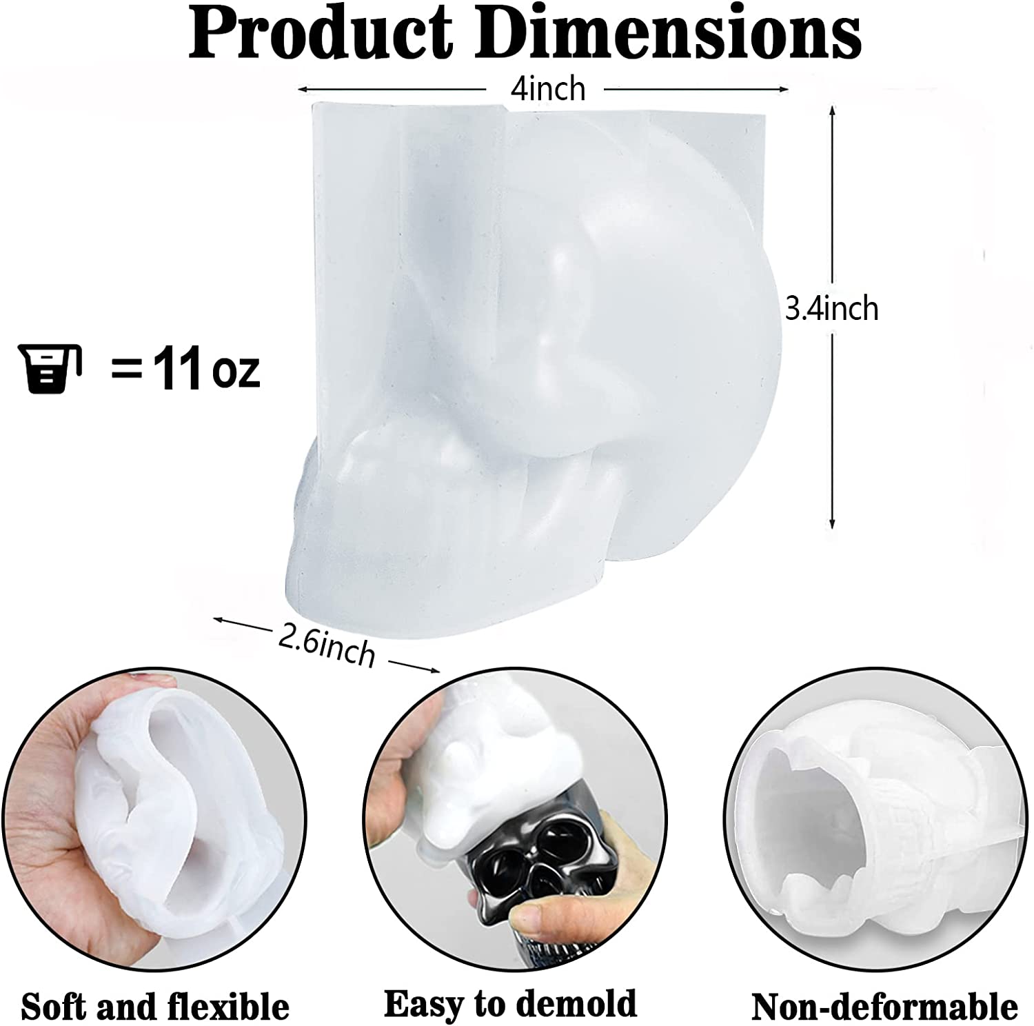 Skull Mold, Funstorm 3D Skull Silicone Molds for Resin, with Exact Detail, Upgraded Skull Epoxy Resin Molds for Candle Making, Resin Casting Art Crafts Home Decor, Outdoor, Holiday Decor
