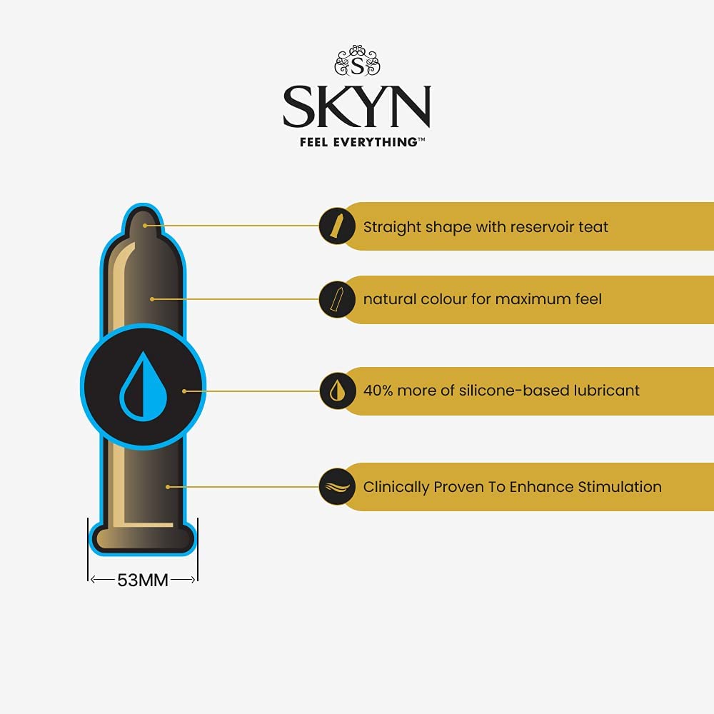 This isn't just a box of condoms. This is the latest in condom technology for a truly intimate sexual experience. Our SKYNFEEL material is soft and comfortable, for the most natural fit and feel. You are holding a ticket to an experience of incredible sensitivity, that vertually allows you and your partner to feel everything.