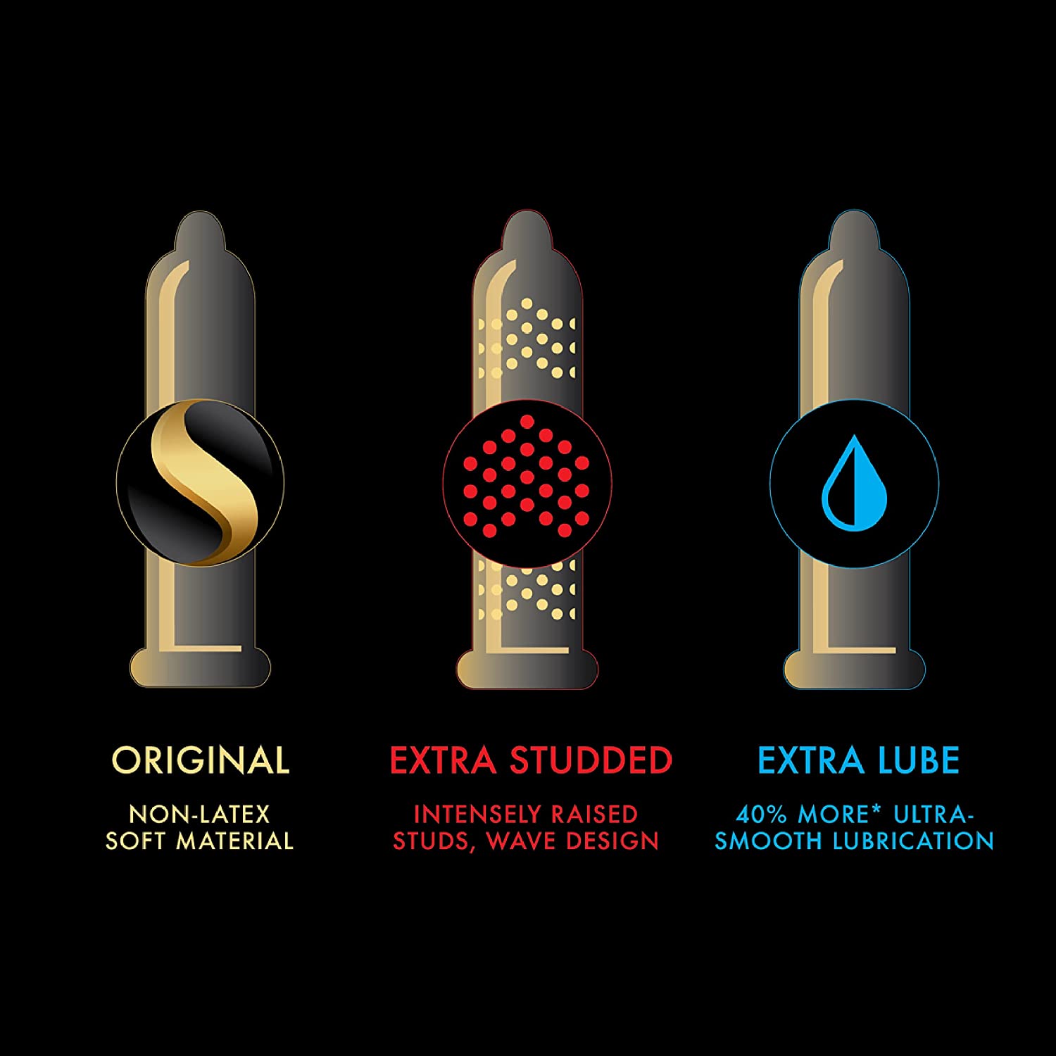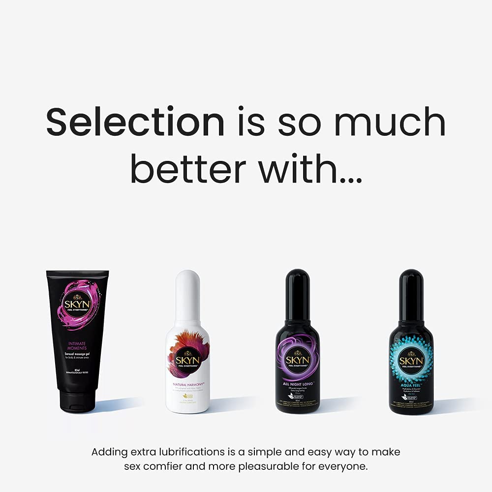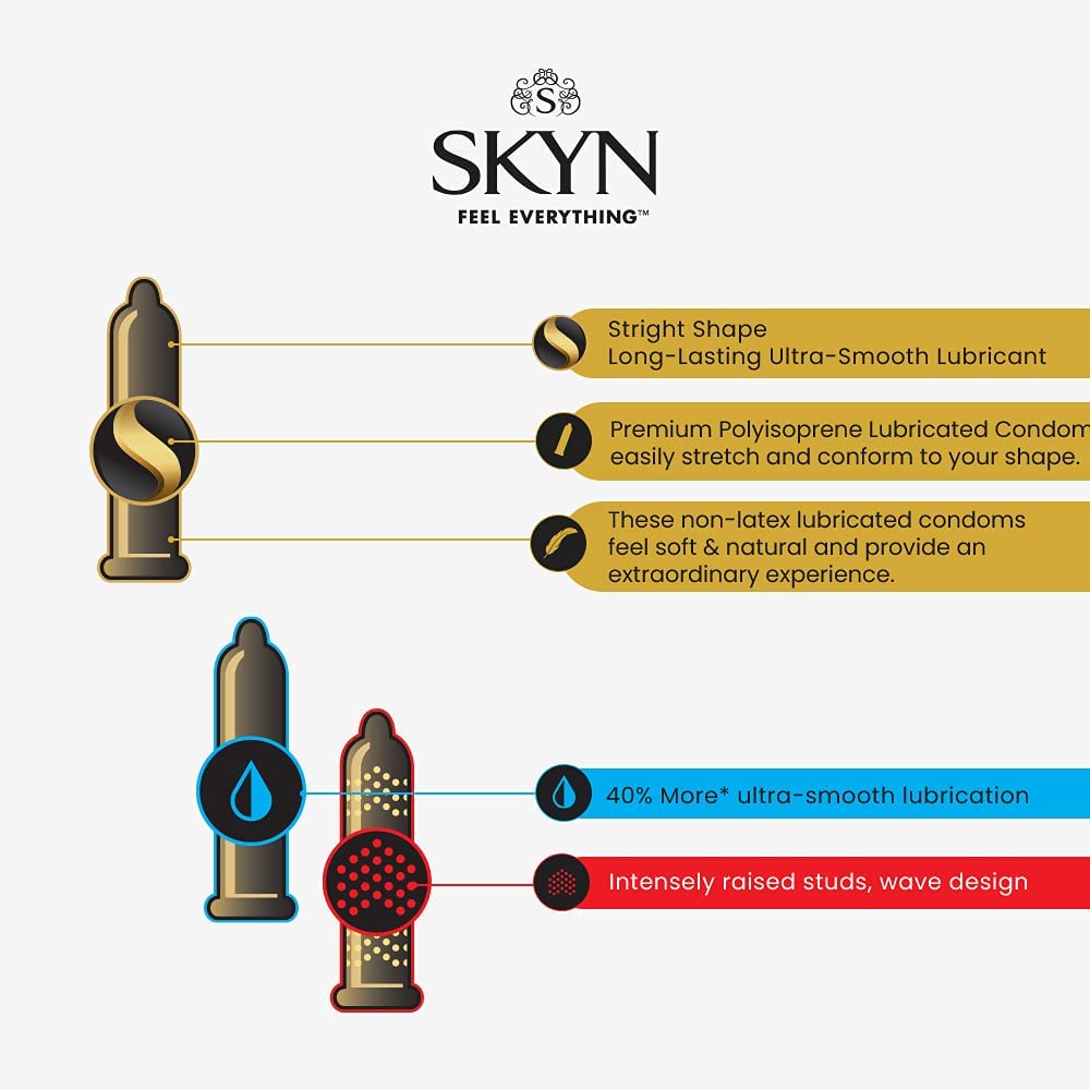 SKYN Premium Polyisoprene Lubricated Condoms easily stretch and conform to your shape so that they are comfortable to use. They're also free from allergens, making them a safe choice. These non-latex lubricated condoms feel soft and natural and provide an extraordinary experience.