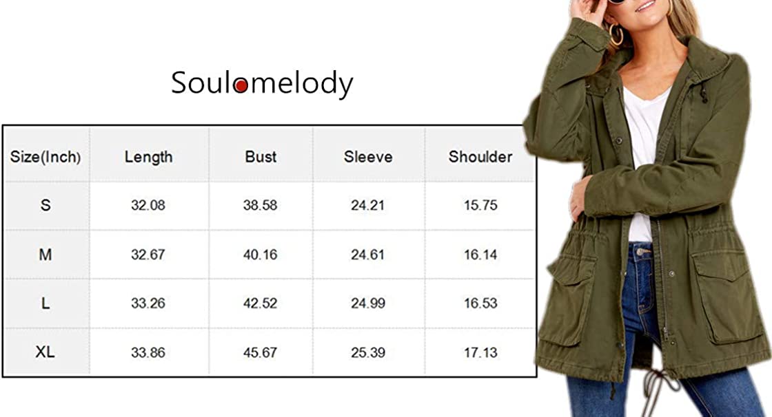 Soulomelody Womens Military Safari Anorak Jacket Hoodies Zip Up Parka Casual Drawstring Coat with Pockets