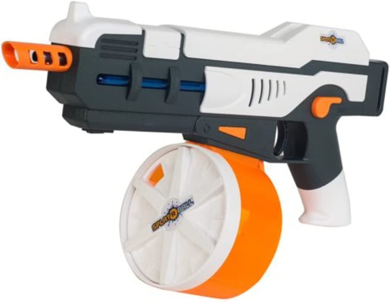 SPLATRBALL everything in your path with full auto water bead fire rate and a 1,200 round drum magazine! The SPLATRBALL SRB1200 Full Auto Water Bead Blaster shoots up to 210 feet per second (fps) SPLATRBALL ammo. It has a drum magazine with 1,200 round capacity. Shoots Certified 7.5mm SPLATRBALL water bead ammo at fire rate. This kit contains one Blaster, 1,200 round drum magazine, detachable stock, 6,000 rounds of SPLATRBALL water beads, rechargeable 7.4V 1800mAh battery with charging cable (up to 5,000 shots per battery charge), SPLATRBALL collapsible funnel for magazine quick loading, safety glasses and one water activated target.