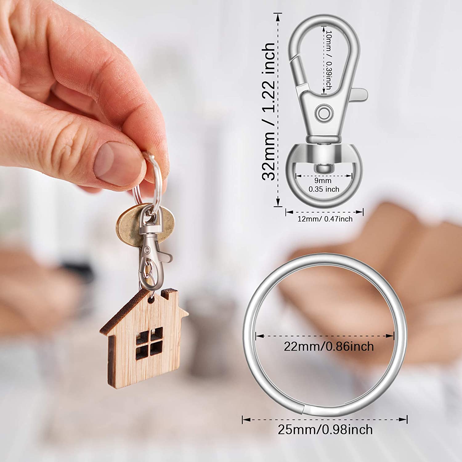sprookber 100pcs Metal Lobster Claw Clasp with Key Ring, Keychain Rings for Crafts, Key Jewelry DIY Crafts, Lanyard Clips snap Hook, Swivel Clasps Clip (Claw Clasp 50pcs+Key Ring 50pcs)