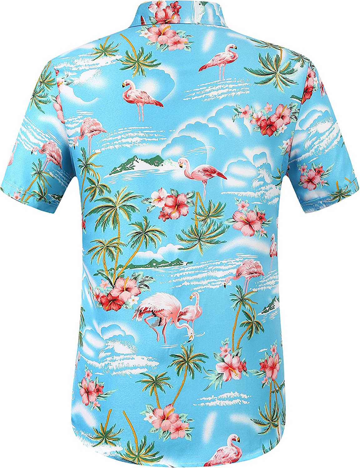 SSLR Mens Hawaiian Shirt Flamingos Casual Short Sleeve Button Down Shirts Aloha Shirt