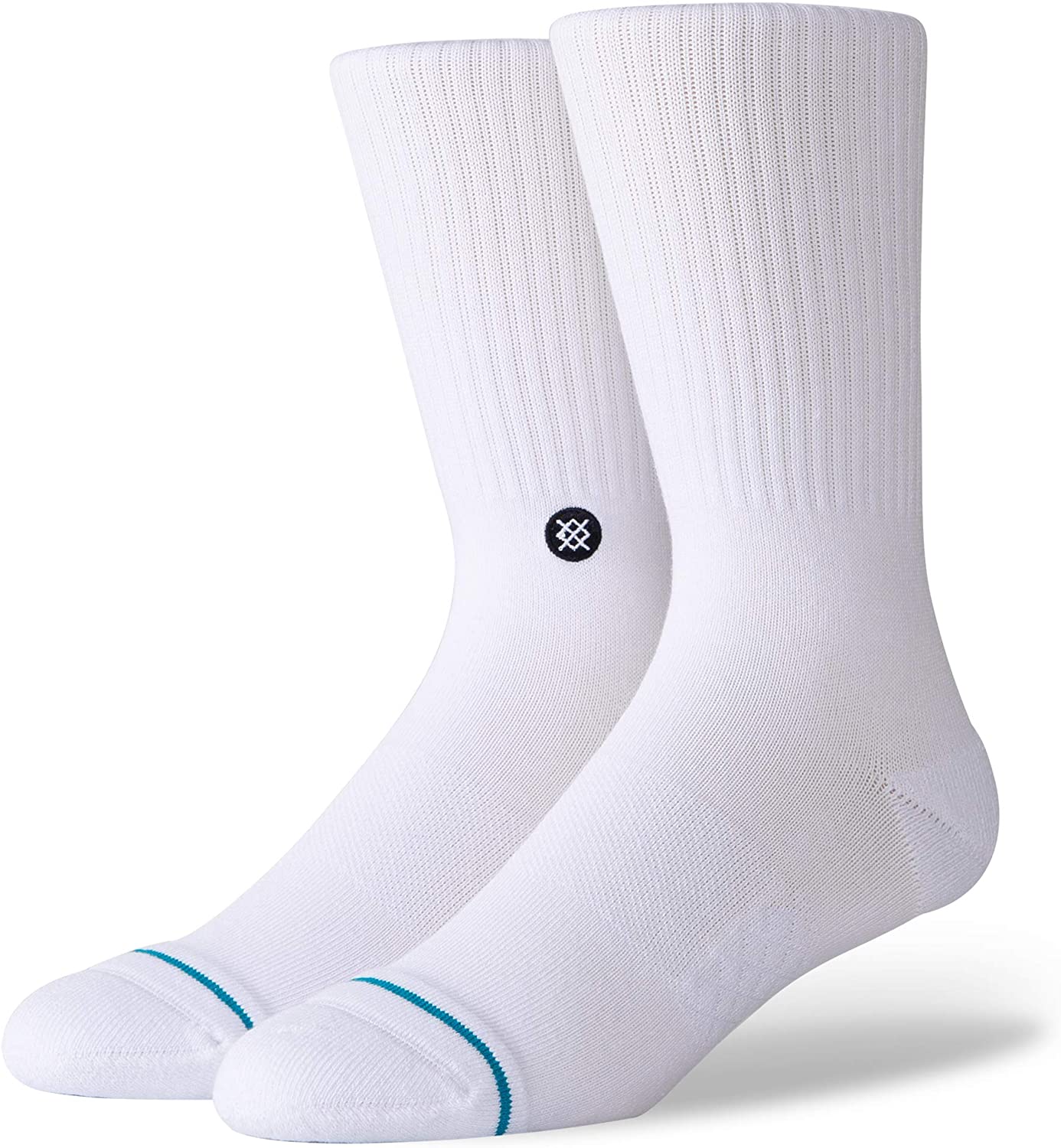 Get the most out of your everyday performance and get back to the basics with a pack of Stance Icon Classic Crew socks. Crew socks that sit at the calf. Sold in a three-pair pack. Made primarily with cotton for exceptional comfort, strength, and breathability. Elastic arch bands help provide outstanding support for all day comfort. 80% combed cotton, 15% polyester, 3% elastane, 2% nylon. Machine wash inside out, hang dry.