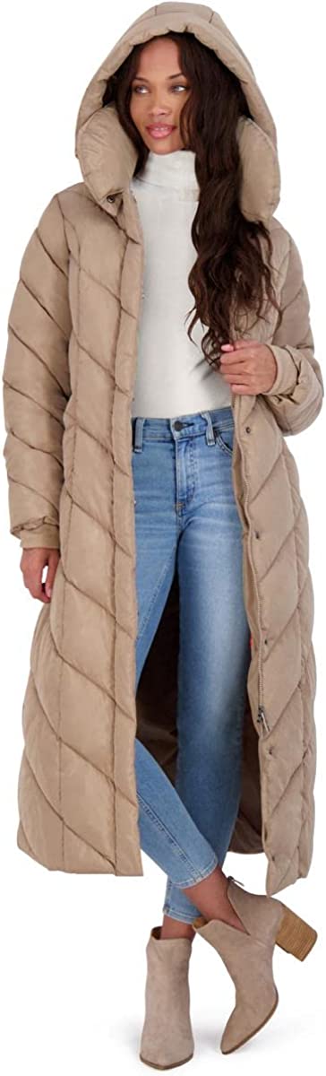 Steve Madden Women's Long Chevron Maxi Puffer Coat