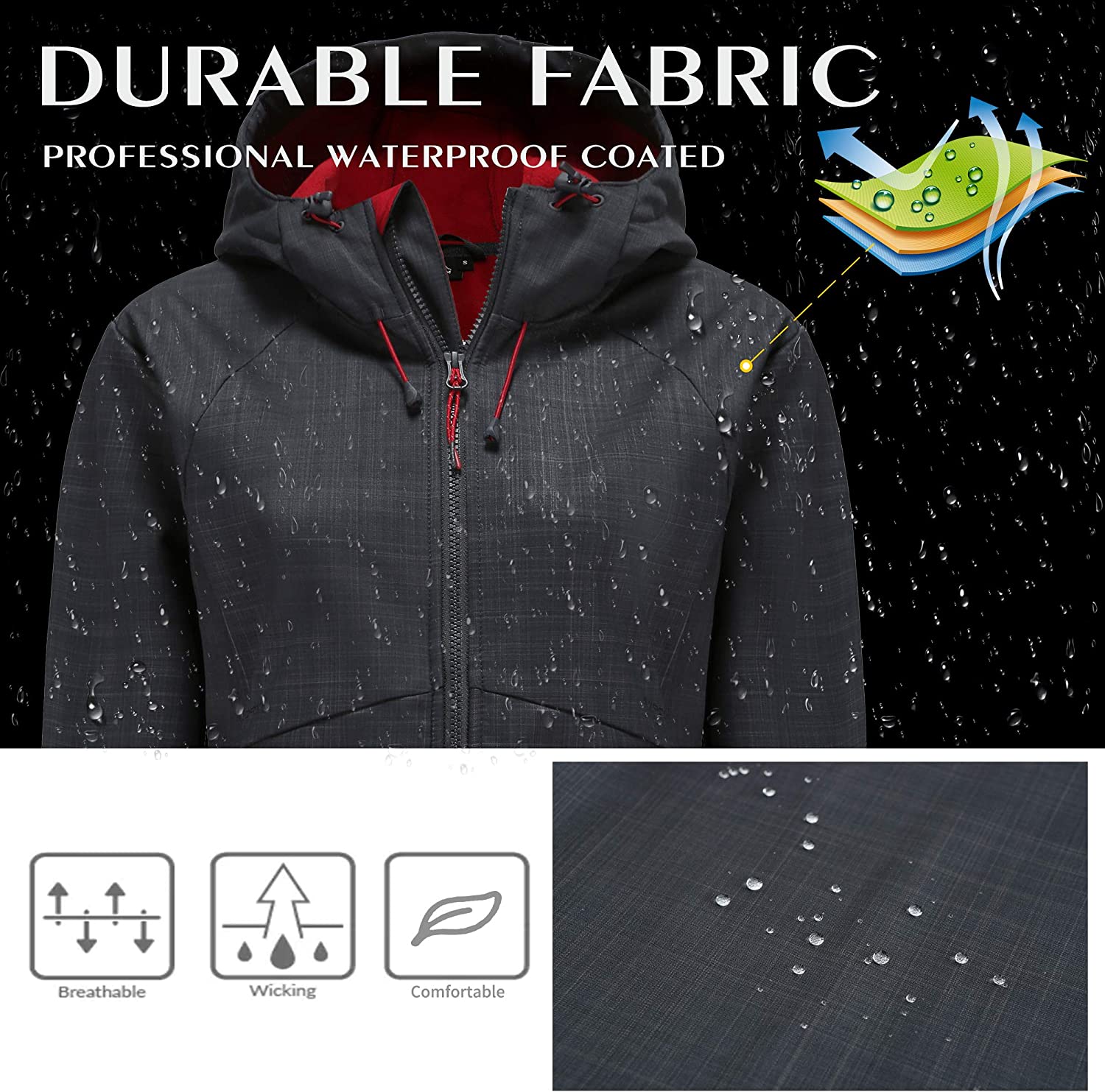 svacuam Women's Fleece Lined Softshell Waterproof Jacket Lightweight Anorak Hiking Coat