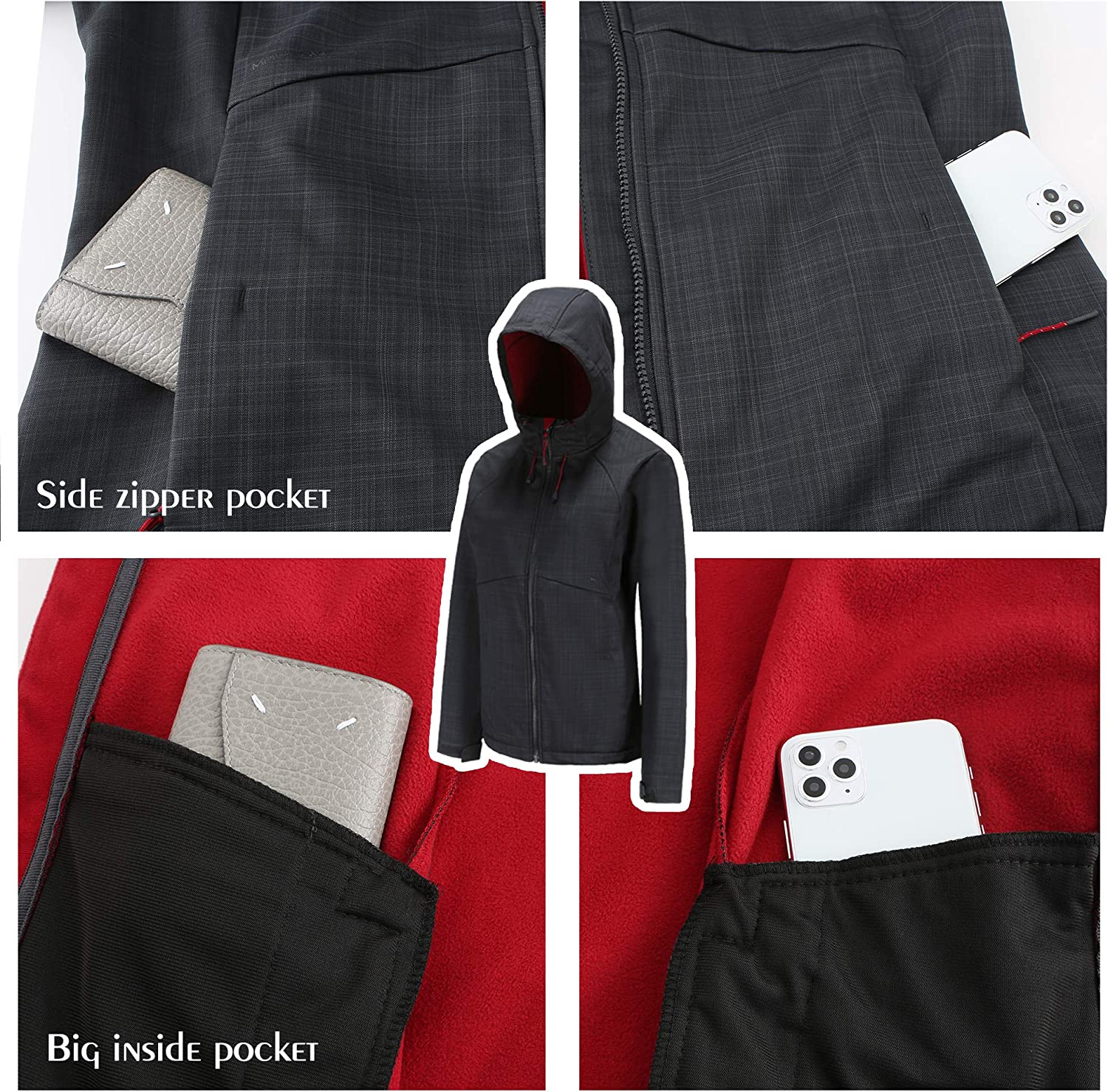 svacuam Women's Fleece Lined Softshell Waterproof Jacket Lightweight Anorak Hiking Coat