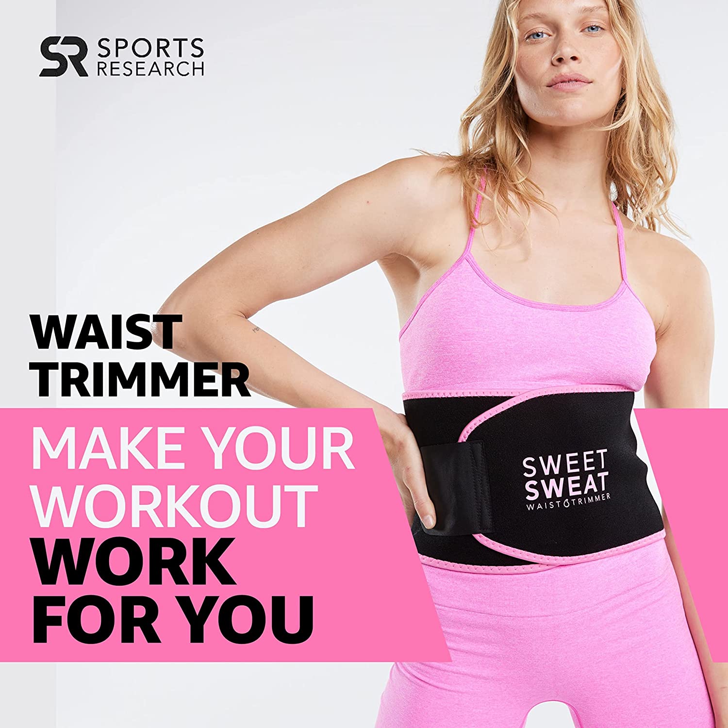 ¡Es Hora de Sudar! Haga que sus entrenamientos sean más efectivos. Obtenga más de sus sesiones con la faja clásica, contorneadora y flexible de Sweet Sweat. Nuestra faja se ajusta a la forma natural y tamaño de su cuerpo. Diseñada con neopreno grueso que ayuda a aumentar la temperatura central de la cintura y el abdomen. Brindándole comodidad mientras suda más y reduce el exceso de agua de su cuerpo. La faja cuenta con un interior texturizado, con neopreno de primera calidad sin látex para repeler la humedad, con un borde y forro reforzado para soporte, y velcro que facilita su uso. La faja también viene con una bolsa de malla Sweet Sweat, ideal para lavarla o transportarla mientras viaja. Disponible en varios estilos y tamaños. Descubra su talla perfecta midiendo el área más amplia de su cintura. Quiere elevar su entrenamiento aún más? Combine la faja con el gel potenciador de Sweet Sweat y aproveche al máximo su próxima sesión. ¡Sude con estilo y alcance su potencial con Sports Research! Sports Research es una empresa privada motivada por la pasión hacia el fitness, el bienestar de la salud y la sanación. Creada en 1980 con el objetivo de ayudar a personas a vivir una vida mejor a través de sus productos con ingredientes respaldados y hechos para todo tipo de cuerpo. Todos nos merecemos lo mejor en nuestra búsqueda hacia una vida sana, la misión de Sports Research es ofrecer precisamente eso.