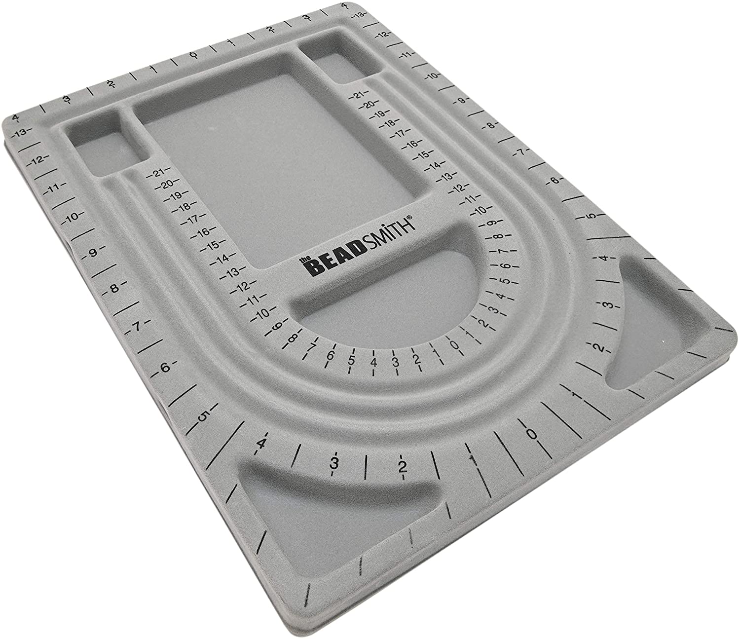The Beadsmith Bead Board, Grey Flocked, 3 U-Shaped Channels, 6 Recessed Compartments, 9.5 x 13 inches, Design Boards for Creating Bracelets, Necklaces and Other Jewelry
