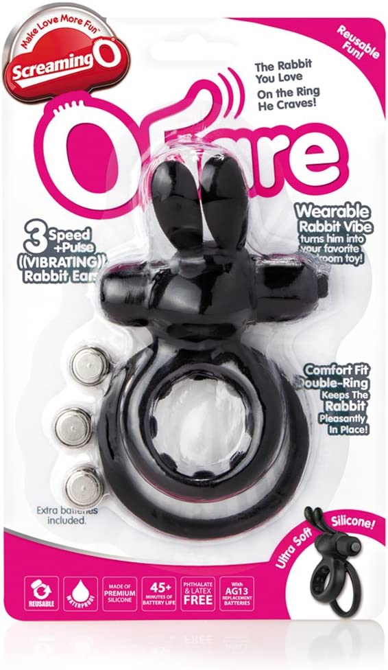 The Ohare turns him into your favorite rabbit vibe with a comfort fit erection ring and super-powered 4-function motor enhanced with soft, flexible rabbit ears. Excite and delight with targeted clitoral stimulation from an iconic shape she loves, and keep him harder longer with a comfort-fit ring that secures the vibrating rabbit in place.