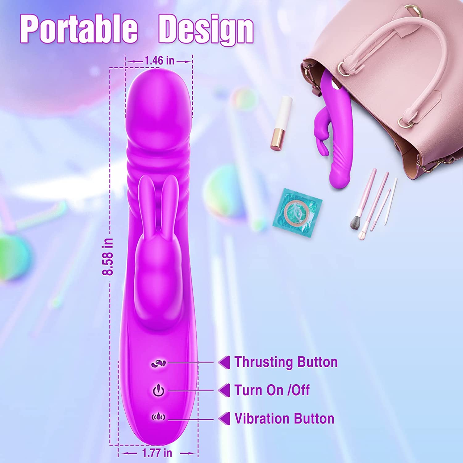 Thrusting Rabbit Vibrator, G Spot Clitoral Vibrator, Pulsing Dildo for Women with 3 Powerful Thrusting Speeds 11 Vibration Modes, Vagina Nipples Stimulator Rotating Vibrator, Adult Sex Toys for Women