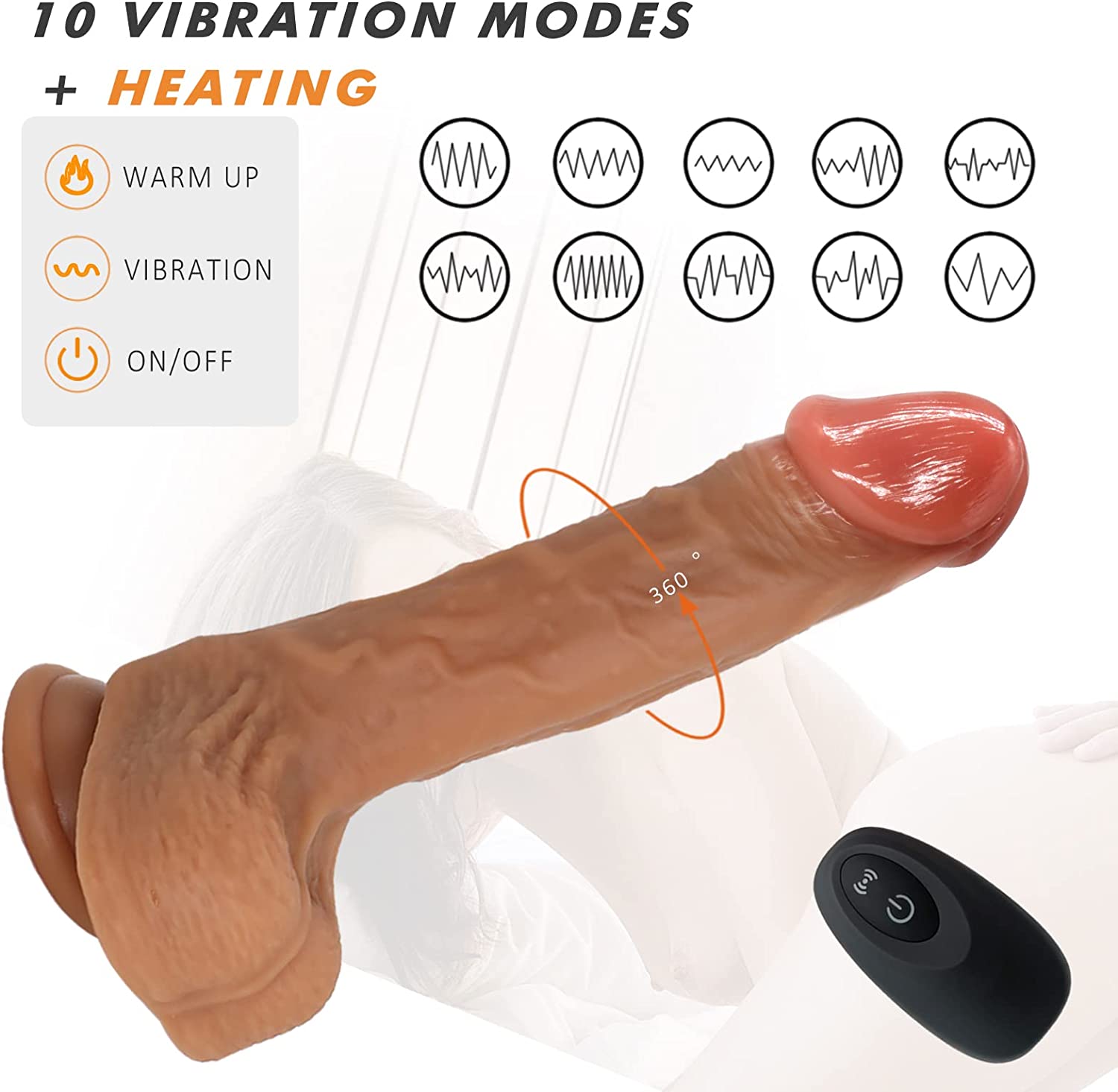 Thrusting Realistic Dildo Vibrator Sex Toy for Women, 9.8 Inch Strong Suction Cup Wireless Heating Dildo with Rotating Actions 10 Vibration Modes Adult Toy for Men