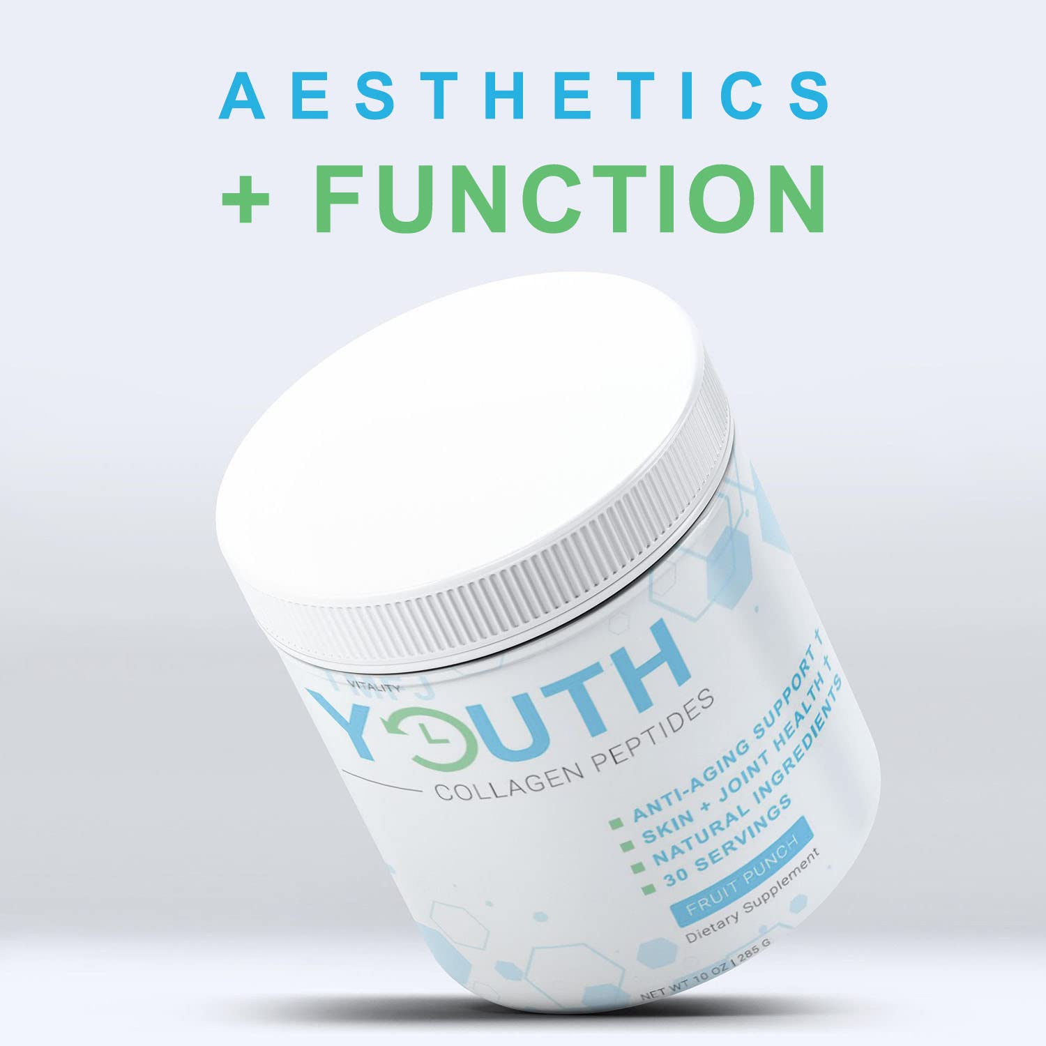 Truly the best collagen peptide blend on the market today, with ingredients proven to be anti-aging, boost metabolism, enhance joint function and decrease joint pain, balance your mood, boost hair growth, improve skin elasticity-tone-brightness, and speed up recovery. With a full amino acid panel included, YOUTH is truly geared toward the aesthetics- minded athlete or adult. There is no other collagen peptide ingredient panel like ours!