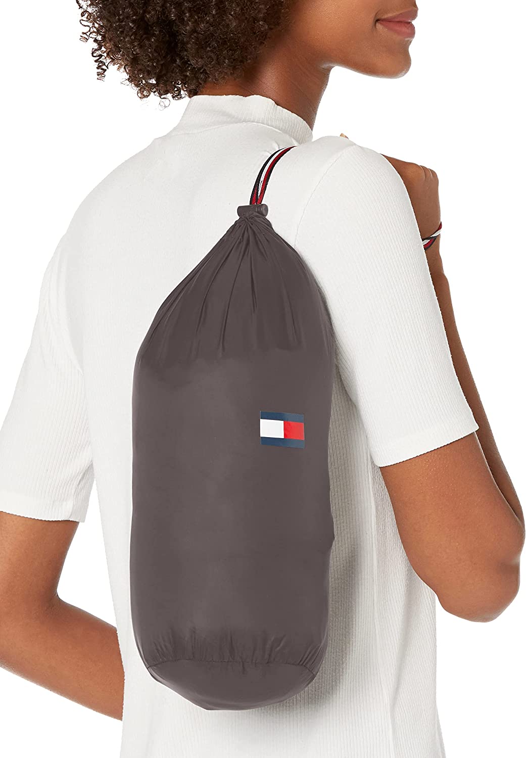 Tommy Hilfiger Women's Mid-Length Puffer Hooded Down Jacket with Drawstring Packing Bag