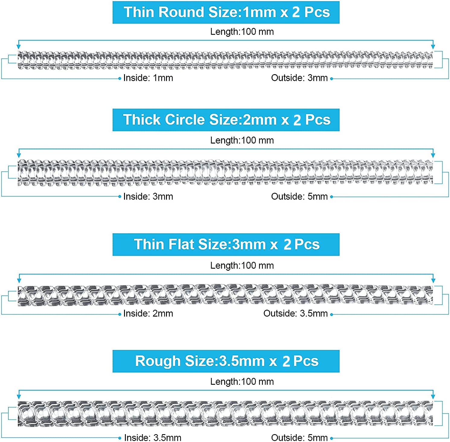 ToneGod Ring Size Adjuster for Loose Rings - 8 Pack, 4 Sizes - Jewelry Sizer, Mandrel for Making Jewelry Guard, Spacer, Sizer, Fitter - Spiral Silicone Tightener Set