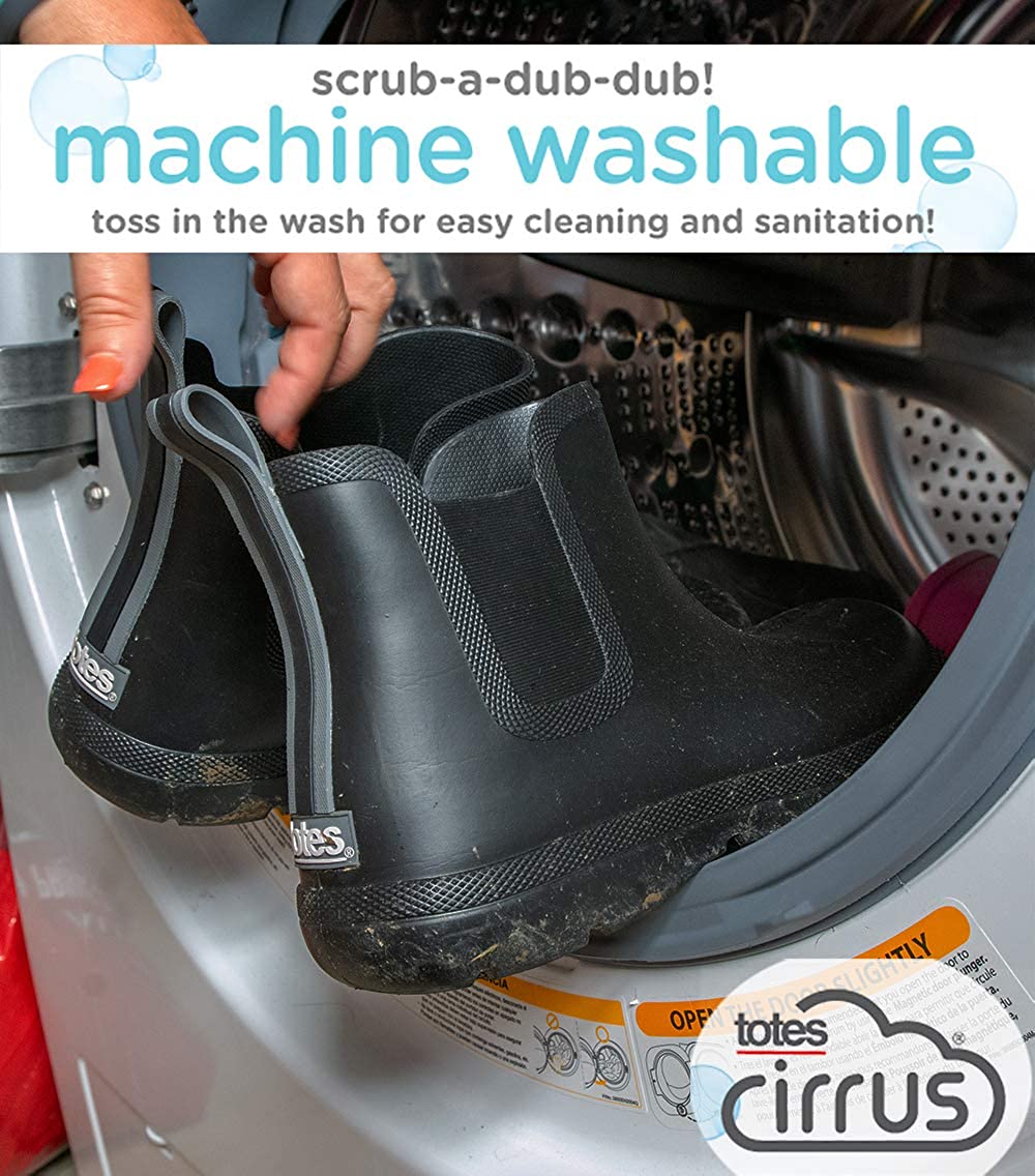 These slip-resistant Men's Chelsea Rain Boots by totes Cirrus feature revolutionary Everywear technology, making them 60% lighter than ordinary rain boots. With a modern pull-on design and a seamless 100% waterproof, lining-free shell, these lightweight rain boots will keep your feet dry year-round. Lifetime durability and comfort that lasts with simple styling you can wear to work—never worry about wet feet during those rainy day commutes again.