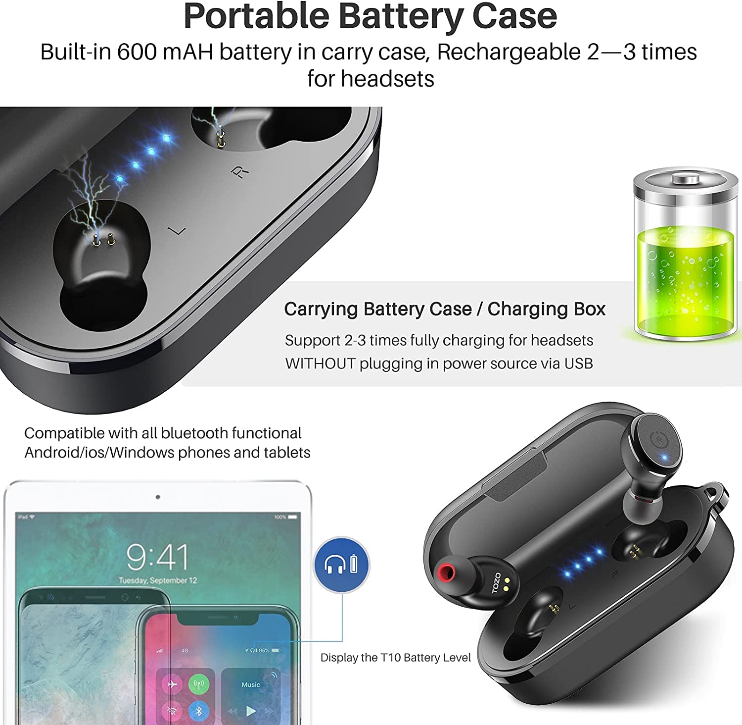 TOZO T10 Bluetooth 5.3 Wireless Earbuds with Wireless Charging Case IPX8 Waterproof Stereo Headphones in Ear Built in Mic Headset Premium Sound with Deep Bass for Sport Black