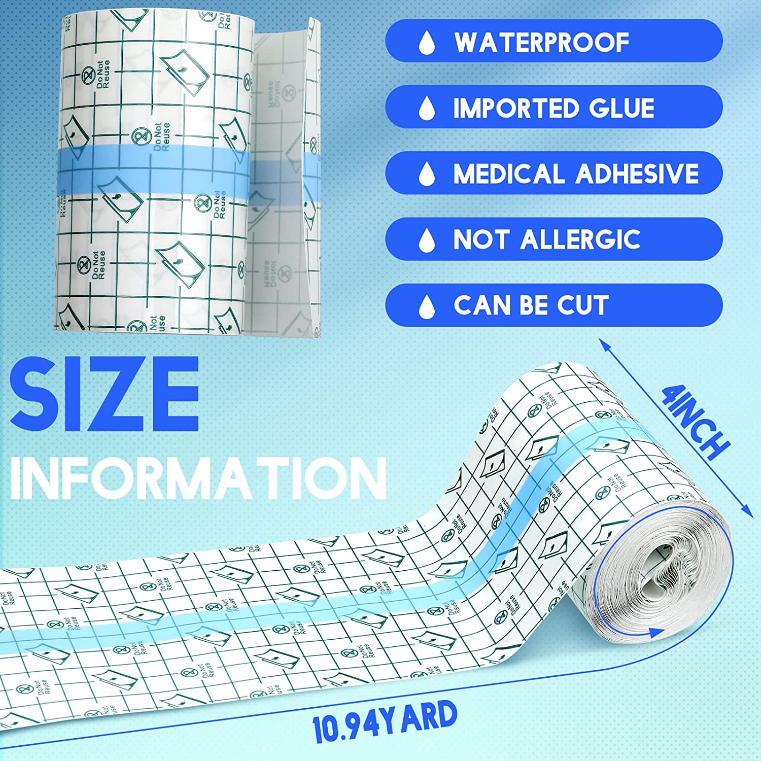 Transparent Stretch Adhesive Bandage Waterproof Bandage Clear Adhesive Bandages Dressing Tape for (4 inch × 10.94 Yard)