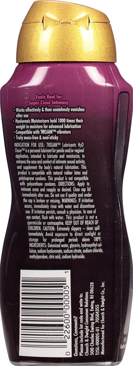 Elevate intimacy and take the experience to new heights with TROJAN H2O Closer Personal Lubricant. This advanced water-based formula takes intercourse to an irresistible intensity. TROJAN H2O Closer Personal Lubricant has hyaluronic moisturizers that hold 1,000 times their weight in moisture. You get advanced lubrication for uninterrupted pleasure. This lubricant is non-sticky and seamlessly vanishes after use – so it’s truly mess free. Fragrance and dye-free, as well as paraben-free, this gel plays well with vibrators, too. Includes one 3 oz. bottle of TROJAN H2O Closer Personal Lubricant. From condoms to vibrators to lubricants, TROJAN Brand is dedicated to delivering innovative, high-quality products that offer pleasure and protection. More Americans trust TROJAN Brand than any other condom, for over 100 years, because we’re committed to investing in public health efforts to support sexual health. The TROJAN Brand promotes a safe, healthy, and fun sex life.