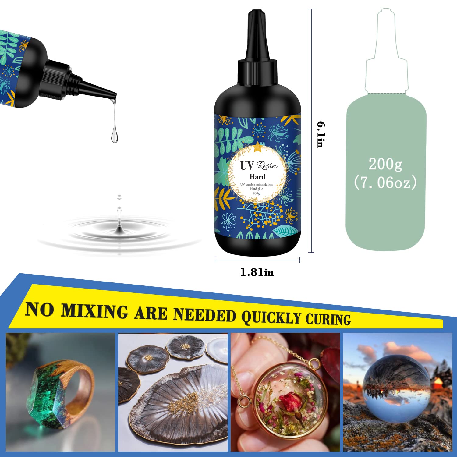 UV Resin 200g Transparent Ultraviolet Curing Clear Hard Type Resin, Solar Cure Resin for DIY Resin Jewelry Making